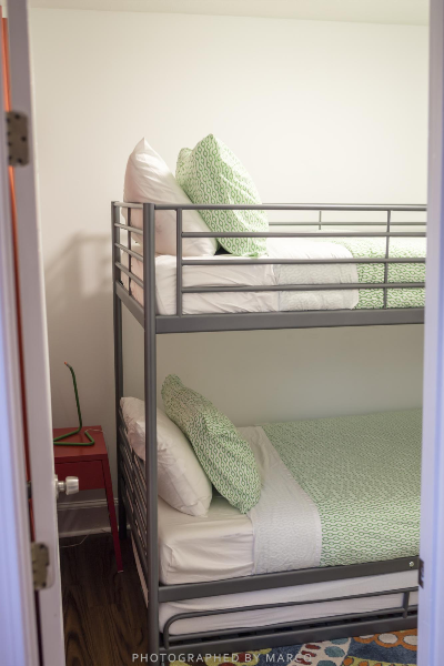 벙커 배드가 있는 이 방에서 2명~ 지하의 3개의 방에서 5명이 묵었다.