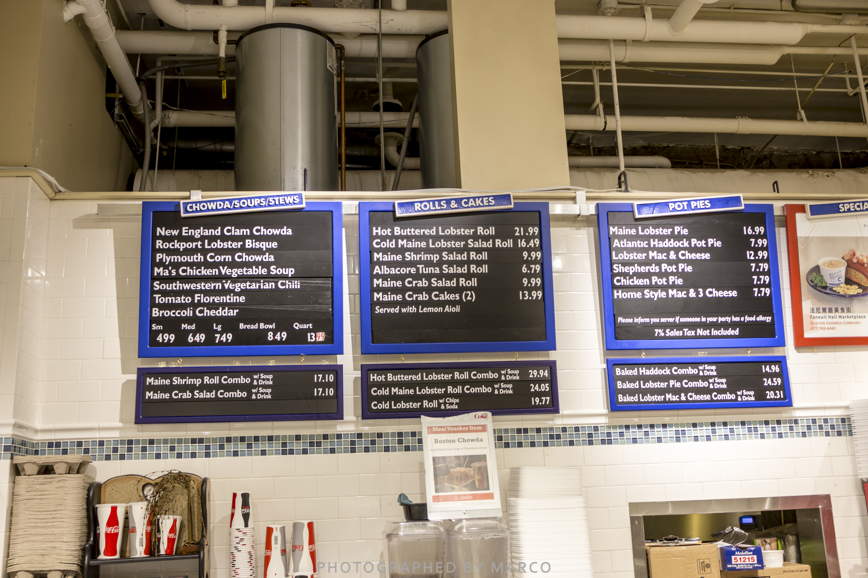 클램 차우더와 랍스터 롤, 파이 등을 판매한다.