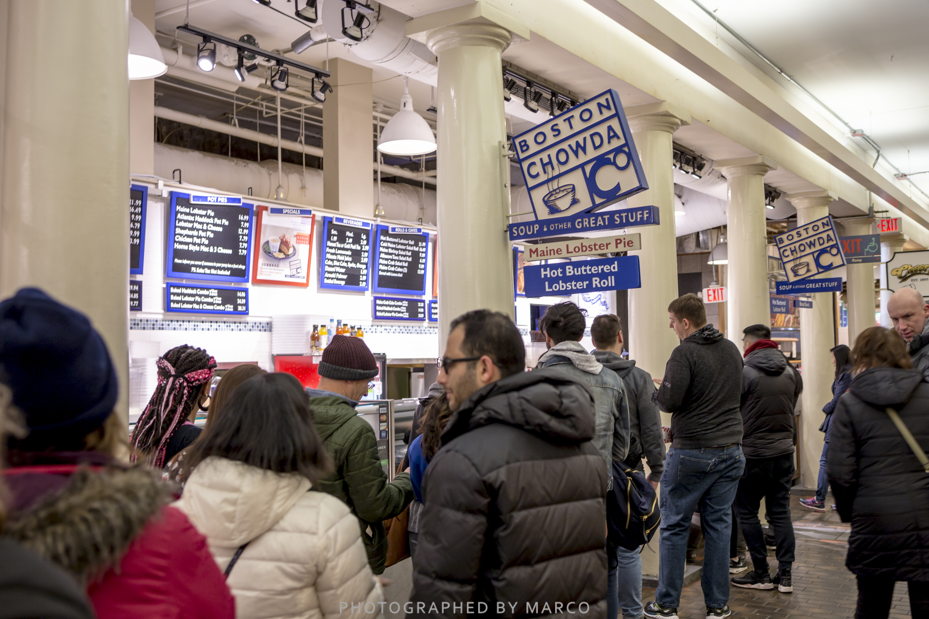 저녁 식사를 하기 위해 퀸시마켓 안으로 들어갔다.