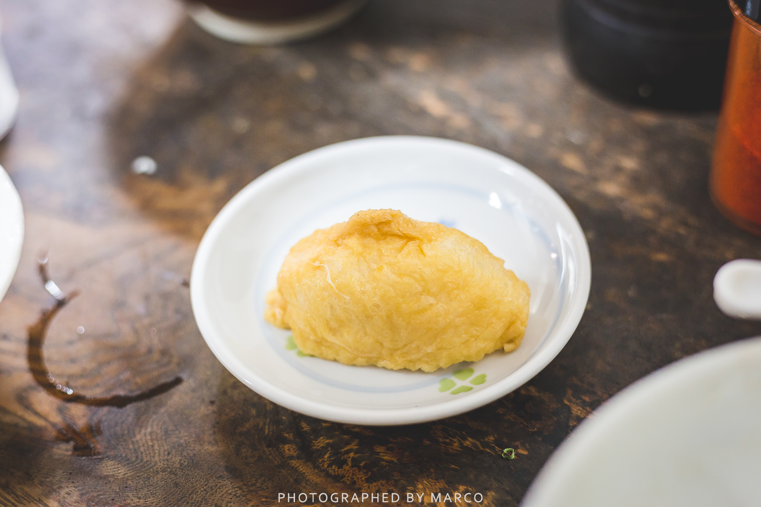 토핑은 전부 80엔, 그리고 유부초밥(50엔)도 팔고 있다.