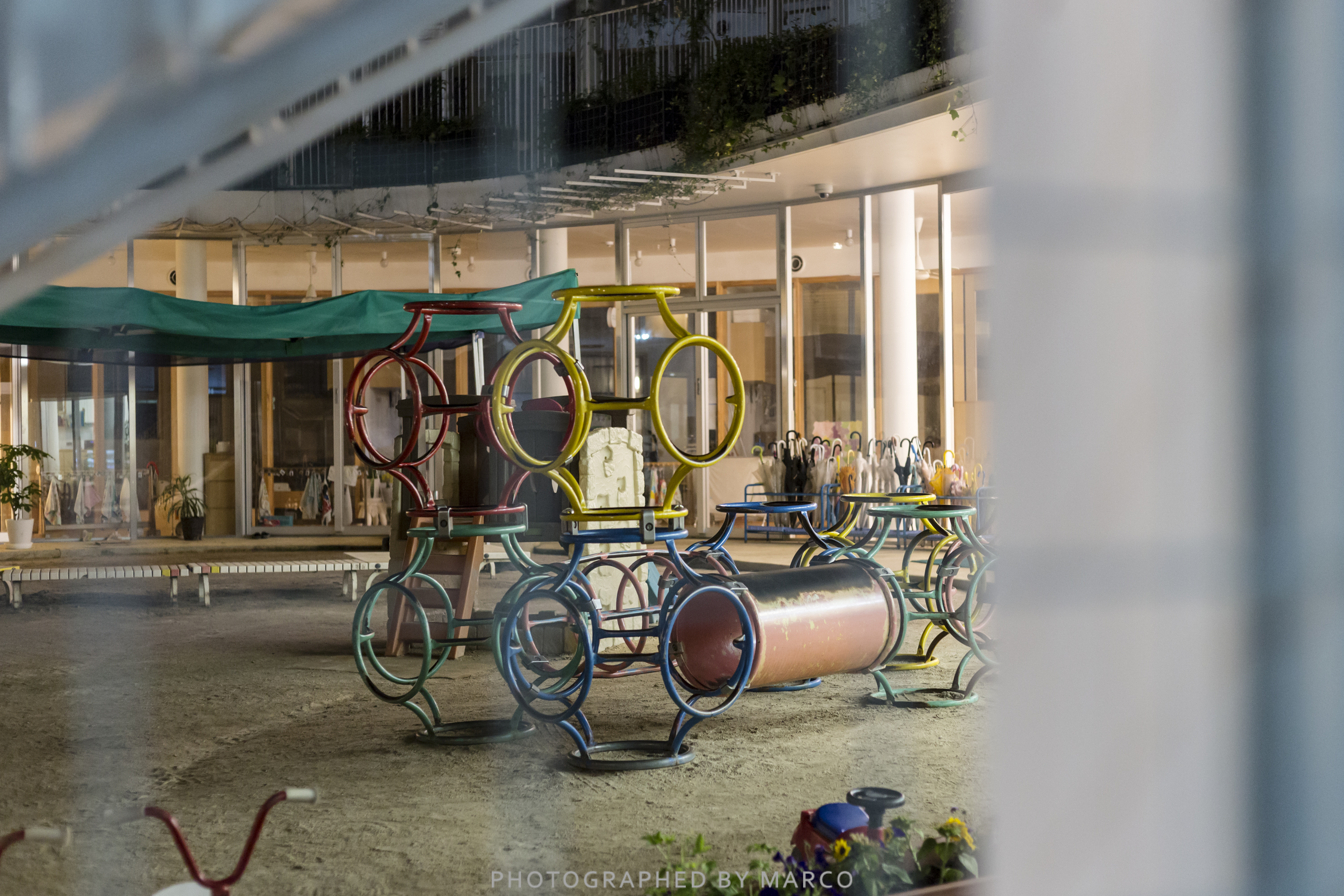유치원의 저 정글짐은 정말 원이 많구나..