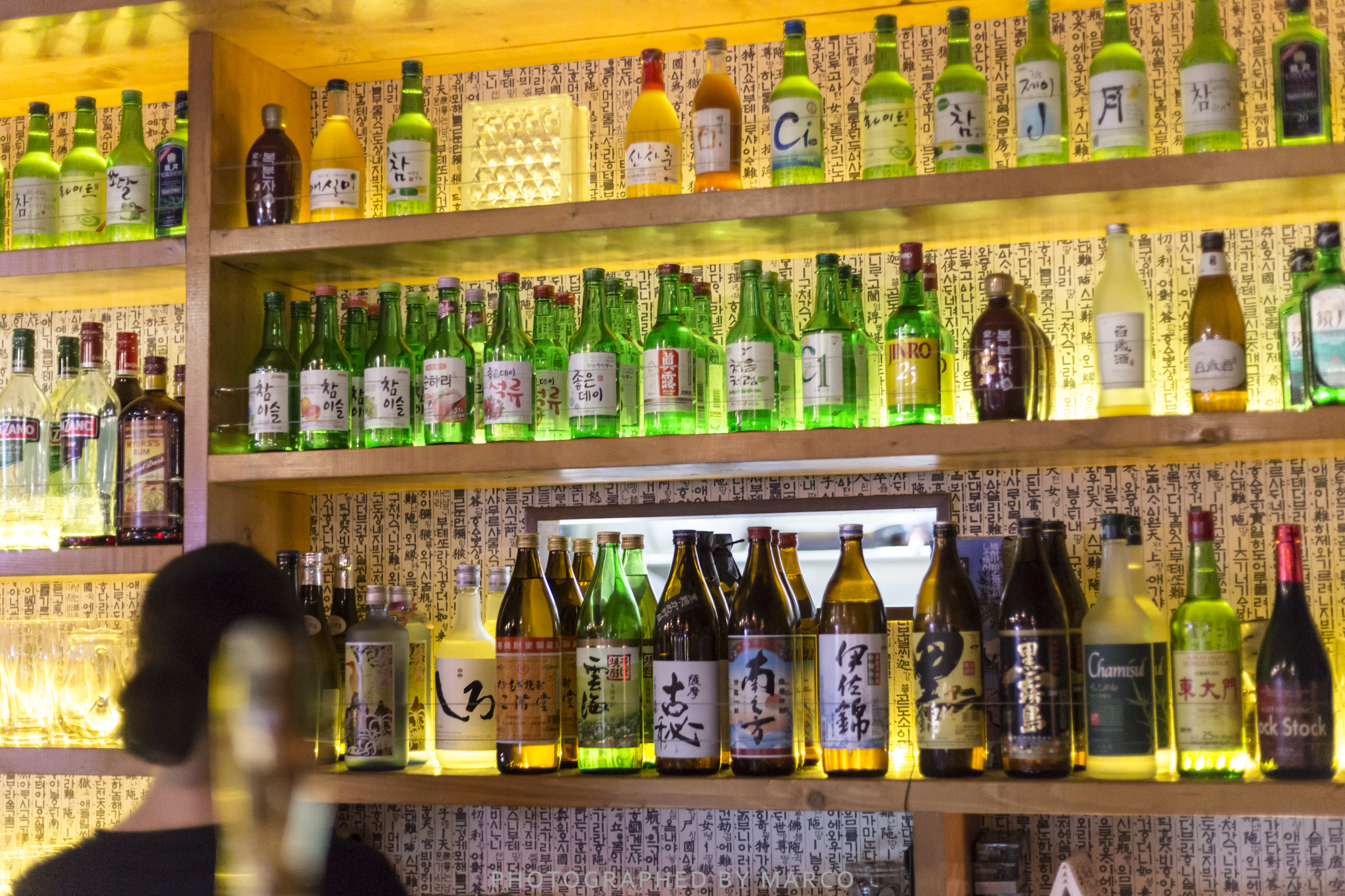 카운터에 위치한 각종 소주병들이 인상적이었다.