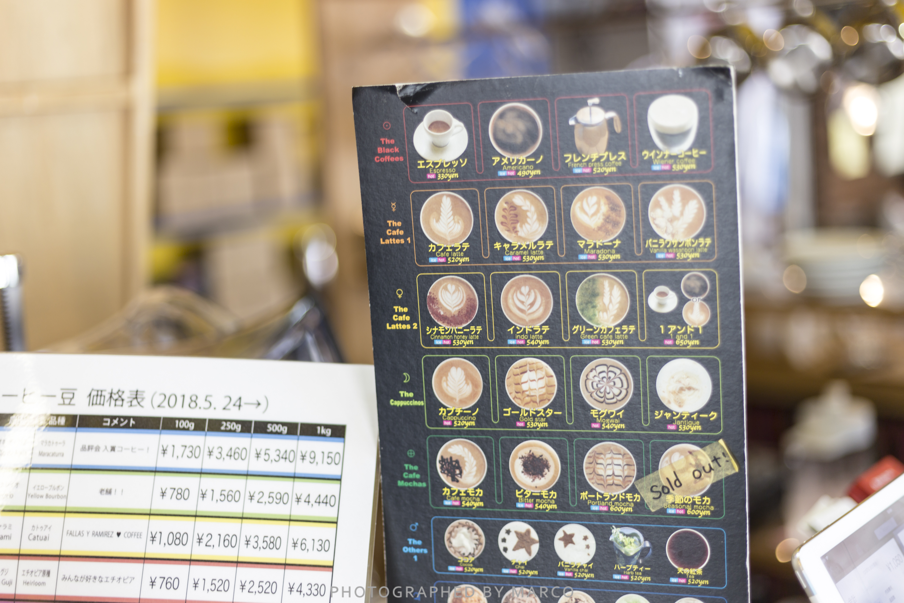 에스프레소가 330엔, 보통 커피는 500~600엔 사이이다.