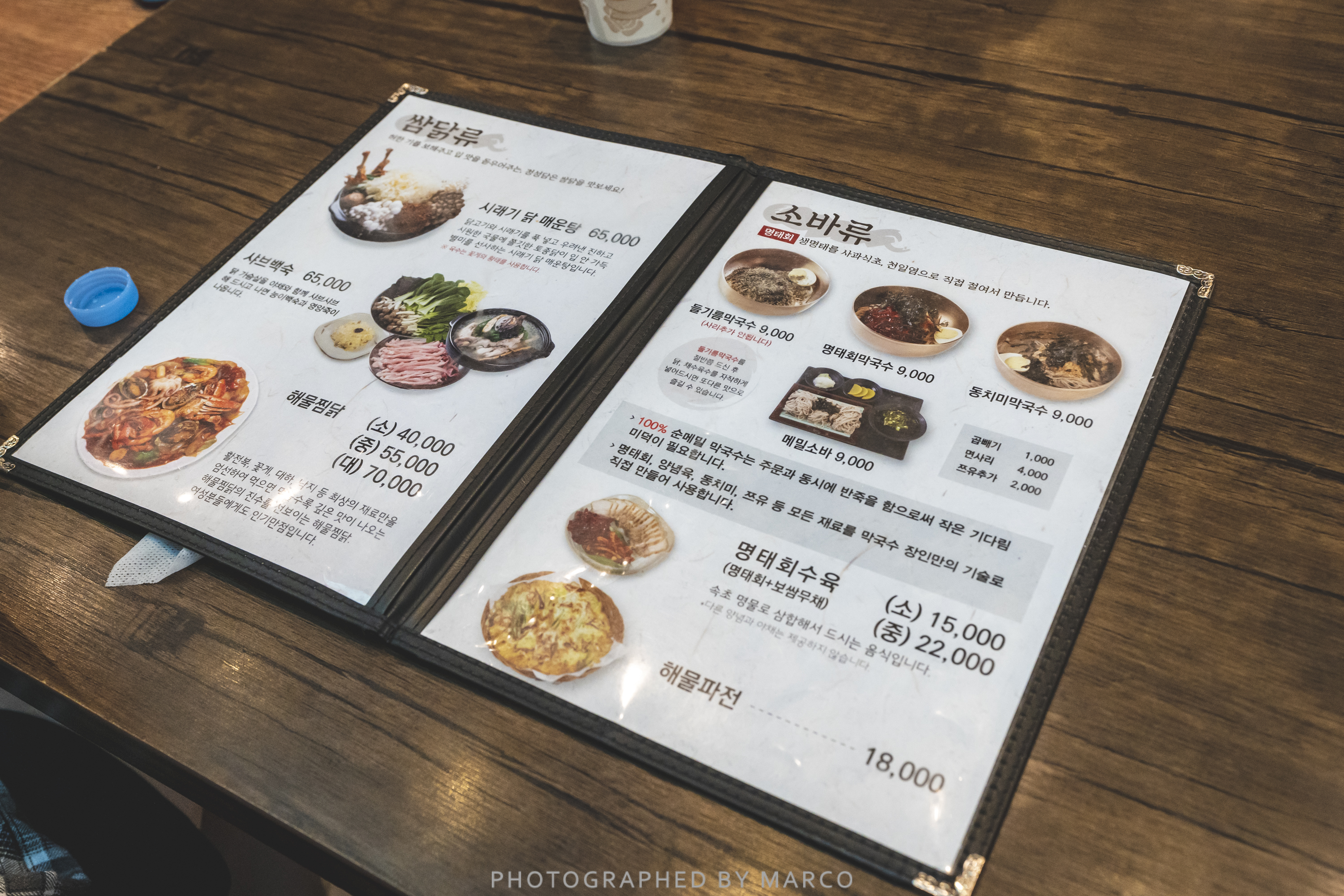 국수와, 찜닭, 파전 등 막걸리 안주(?) 같은 메뉴들이 가득하다.