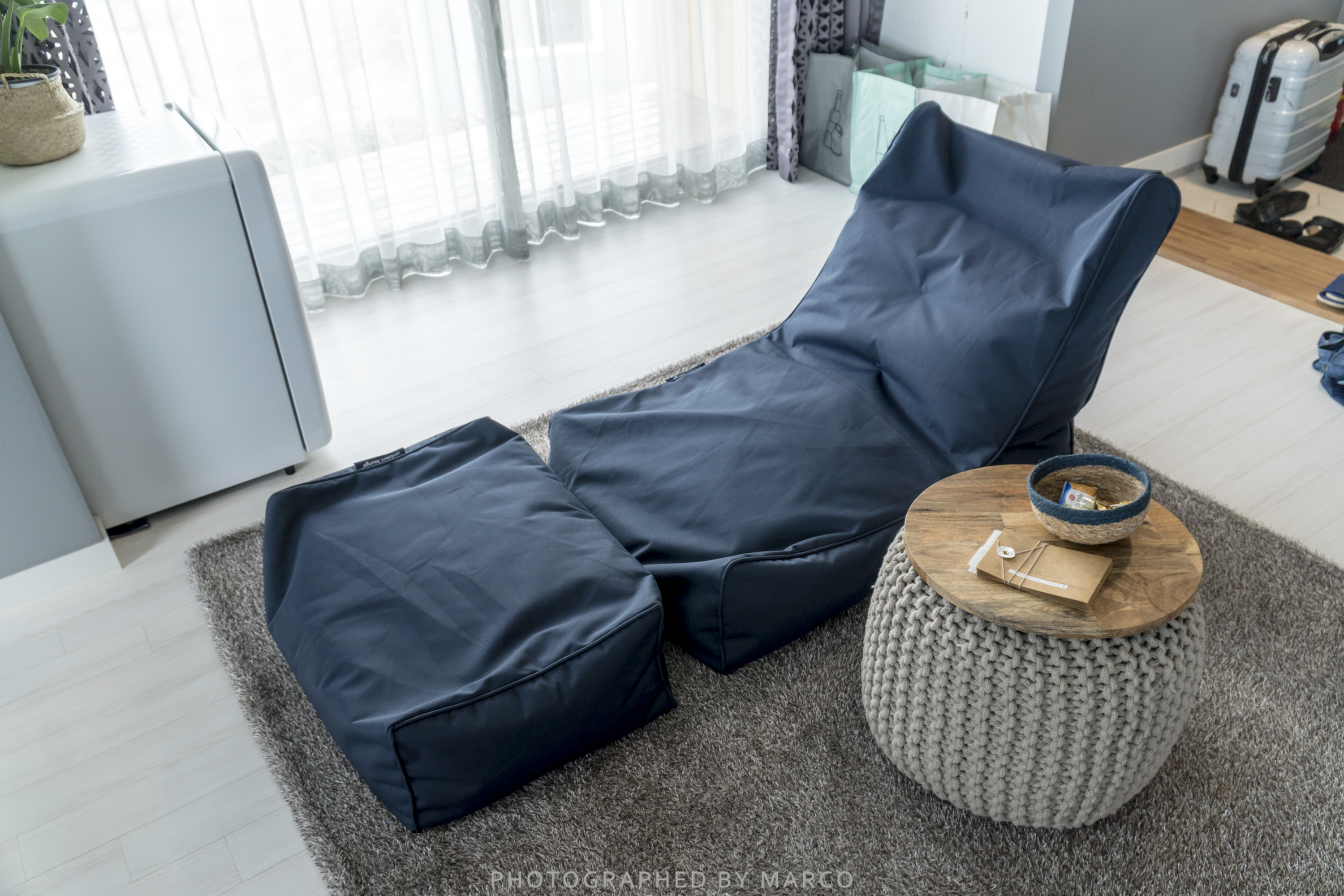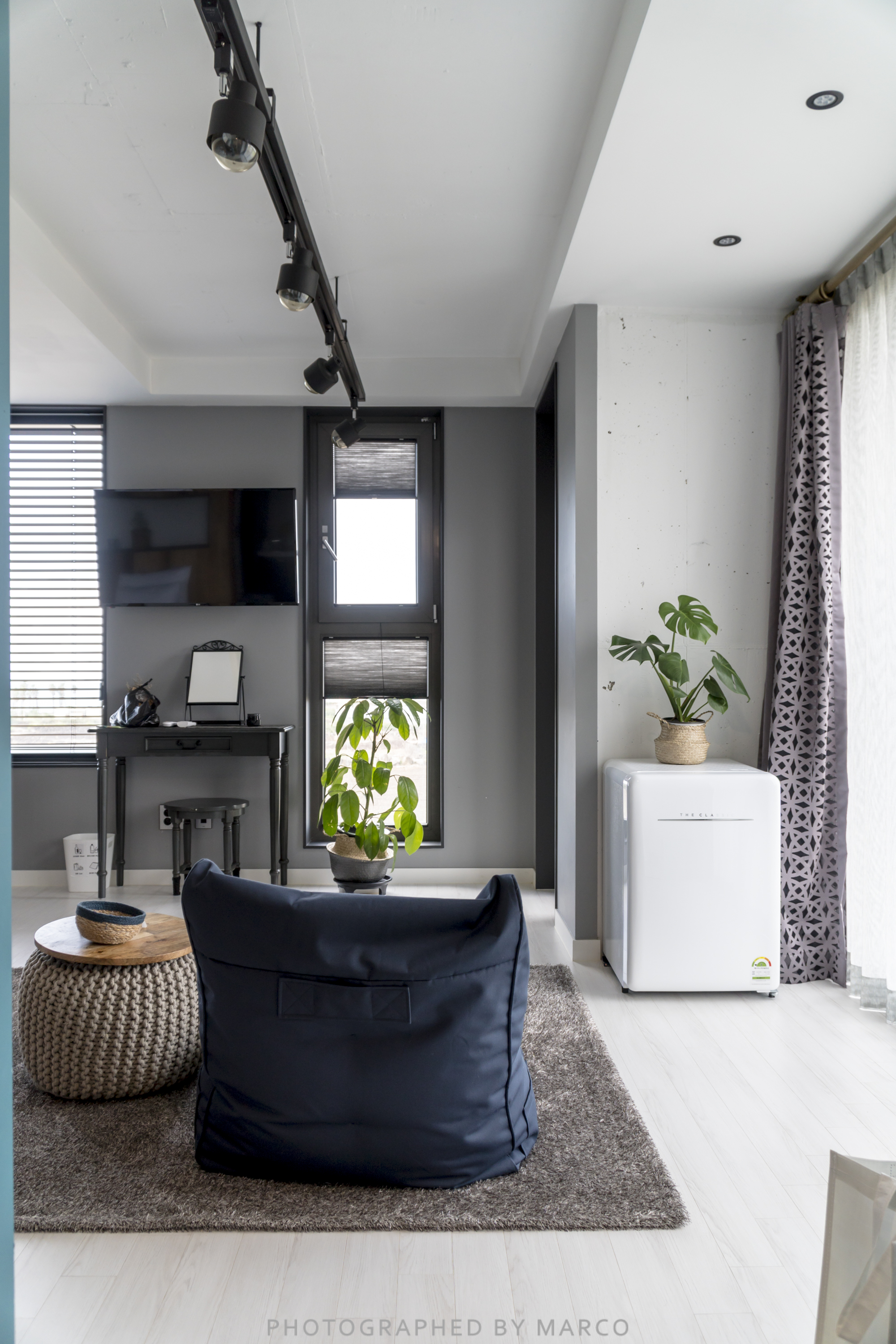 작은 화장대와 TV, 그리고 빈백