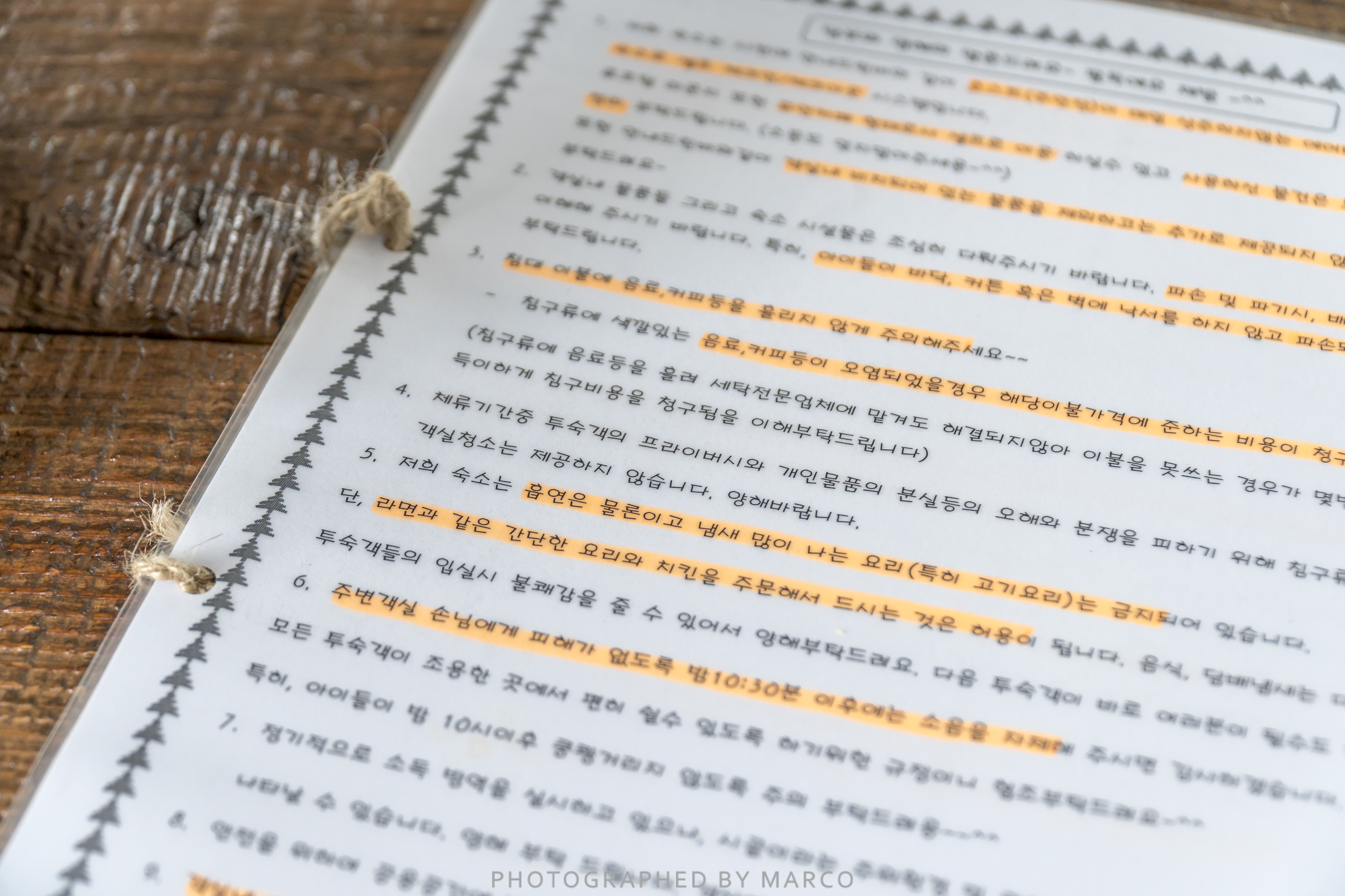 숙소에서의 제공 서비스 및 주의사항이 잘 정리되어 있다.