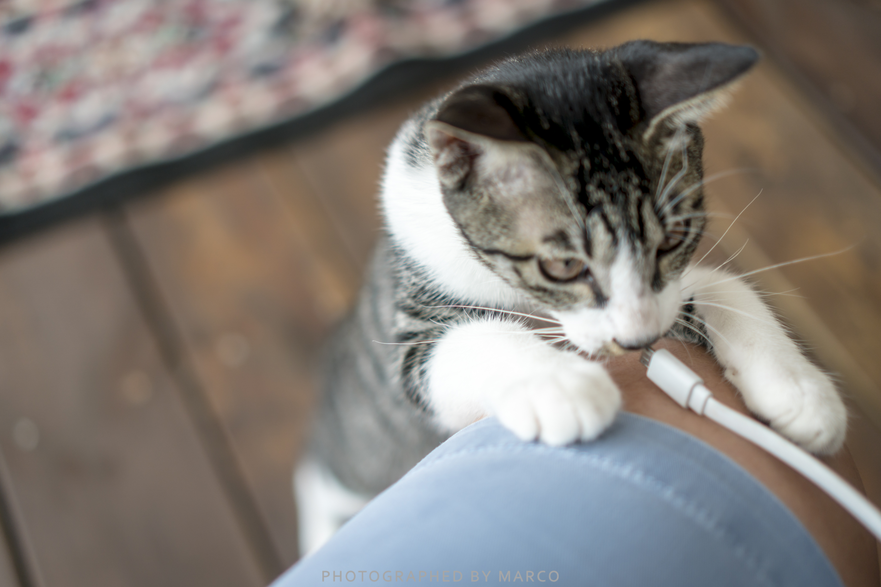 한창 호기심이 넘치는지 휴대폰 충전기 선을 가지고 놀아주니 금세 친해졌다.