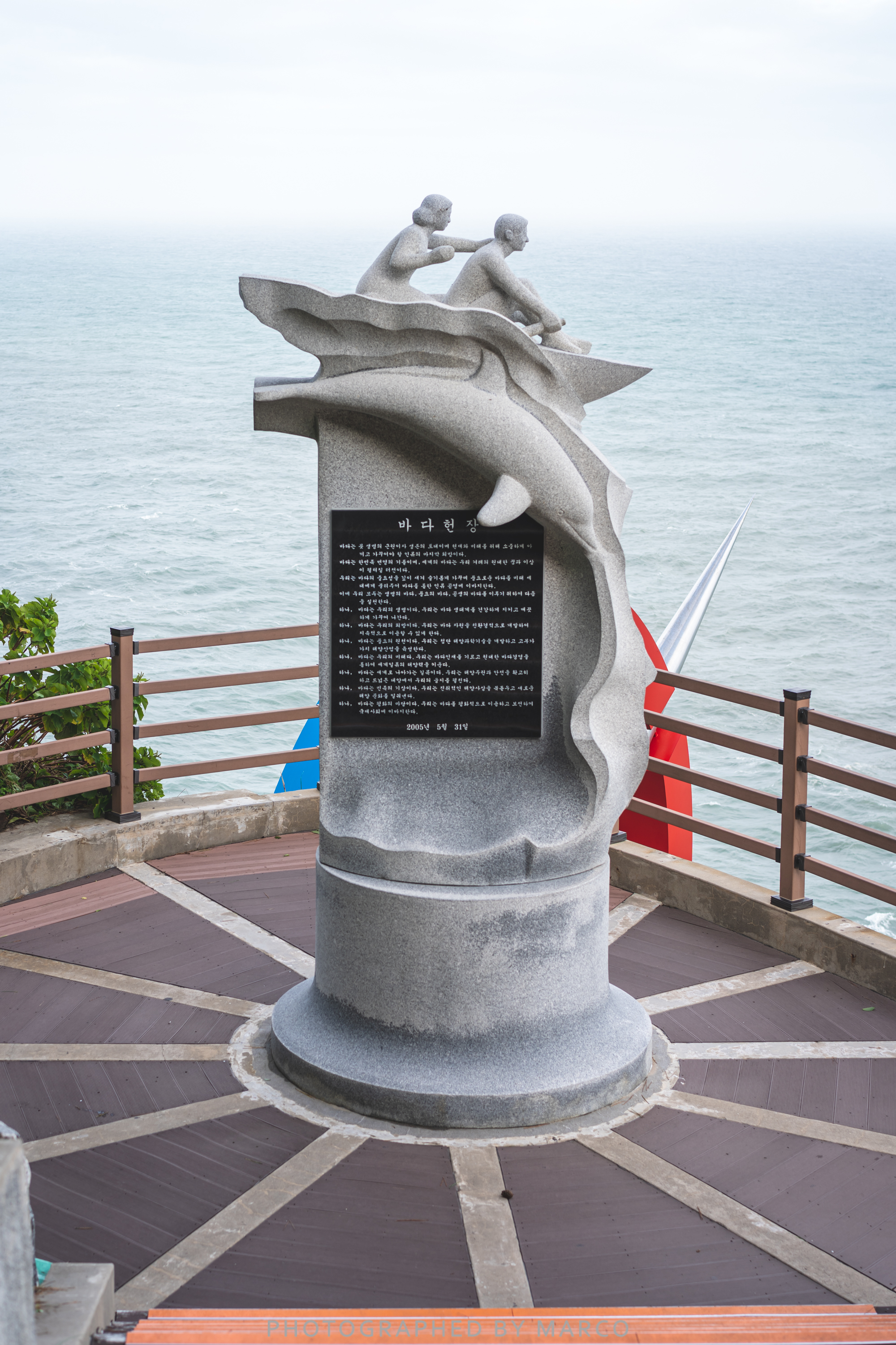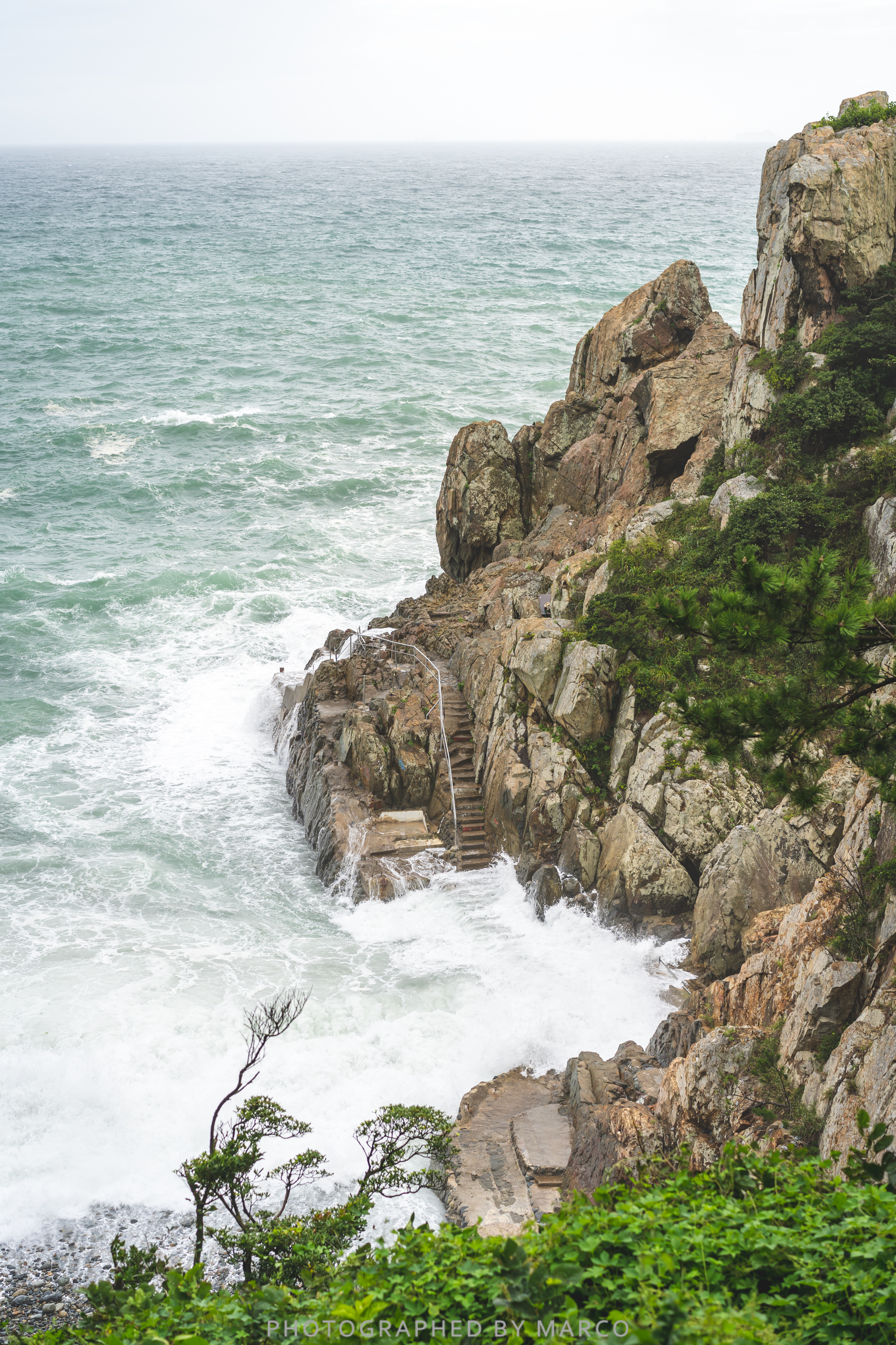 날이 맑았다면 내려가서 가까이 보고 싶었는데 파도가 거세 아래로 내려가는 길은 통제되어 있었다.