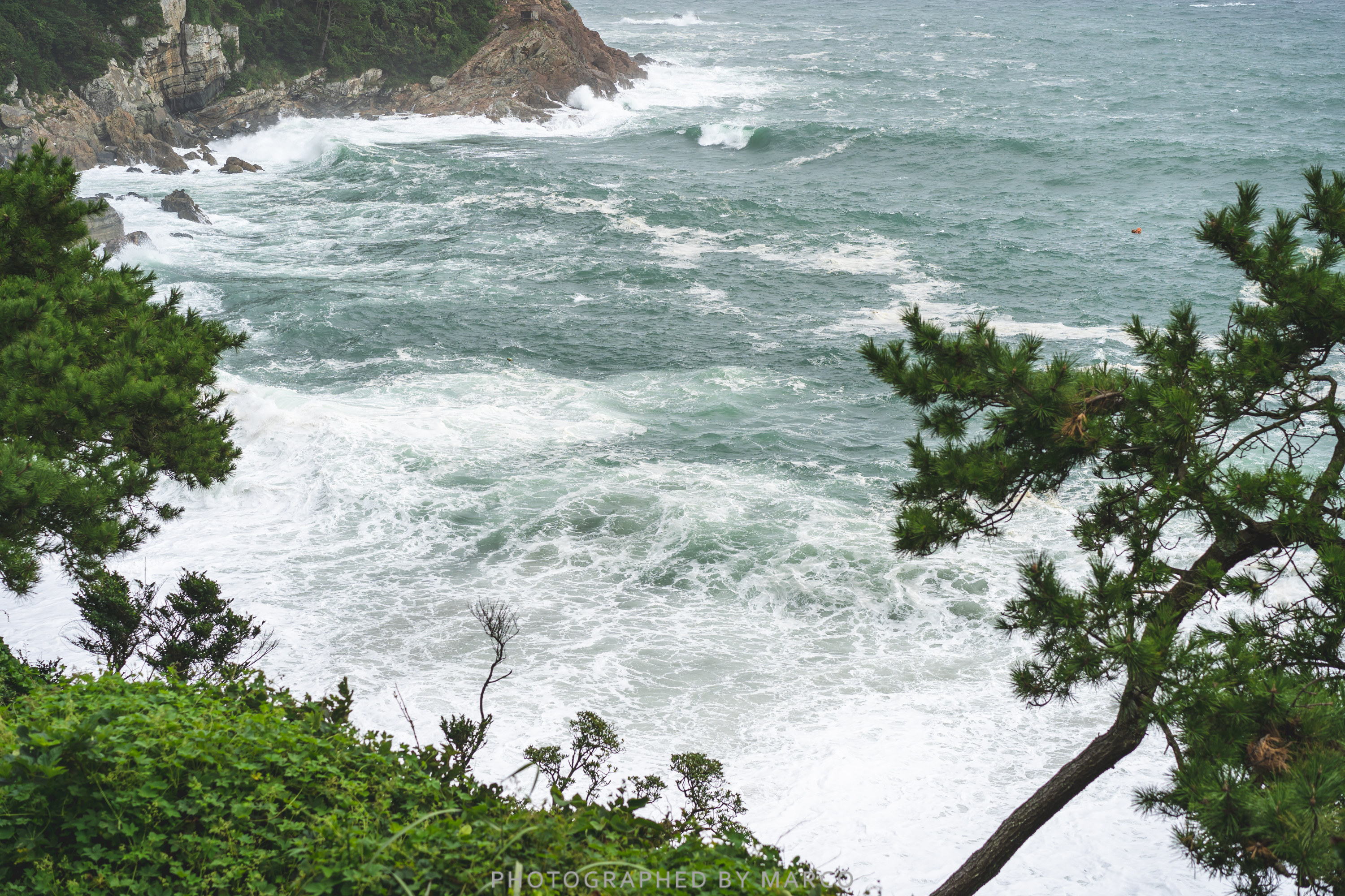 날이 맑았다면 내려가서 가까이 보고 싶었는데 파도가 거세 아래로 내려가는 길은 통제되어 있었다.