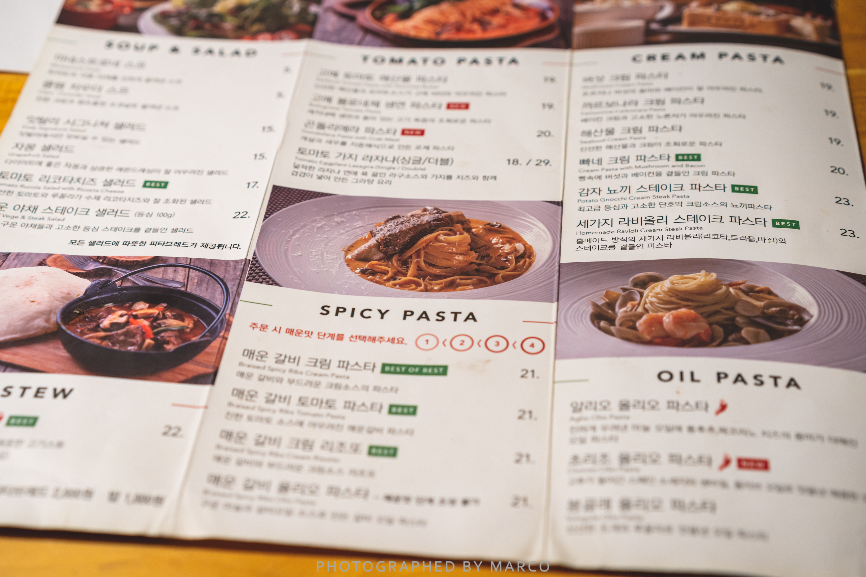 '매운 갈비 크림파스타'와 '치즈 화덕 피자'를 주문했다.