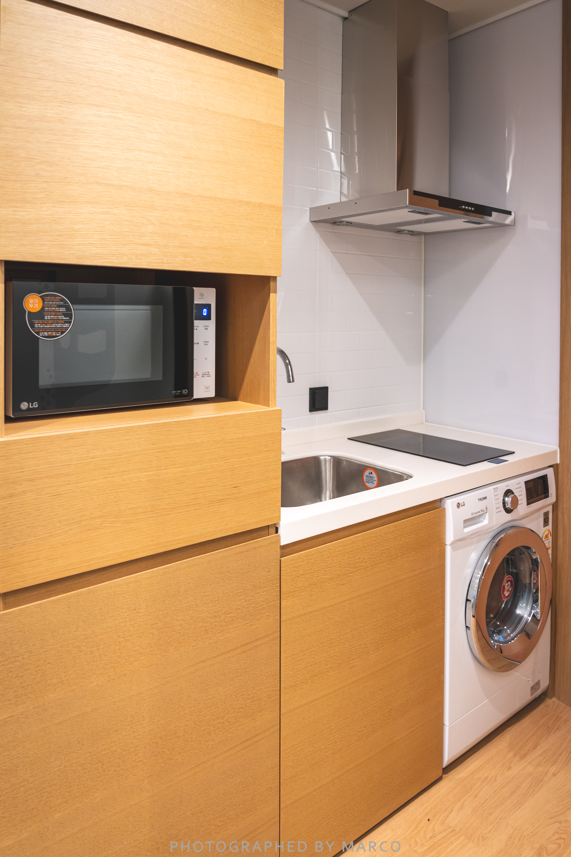 인덕션에 전자레인지, 세탁기 그리고 LG스타일러스(빨래가 필요 없음)가 설치되어 있었다.