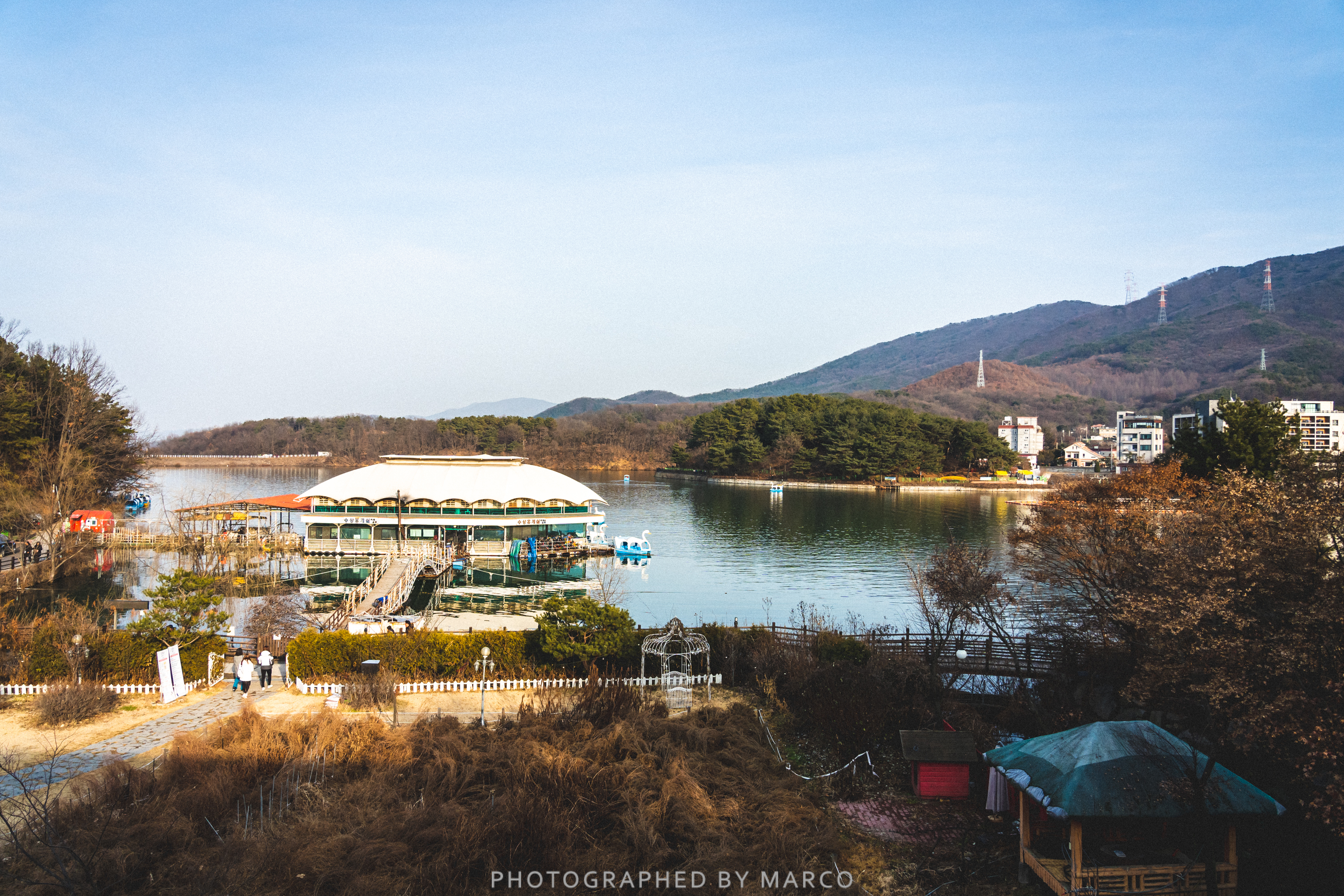 테라스에서 본 고모저수지의 풍경
