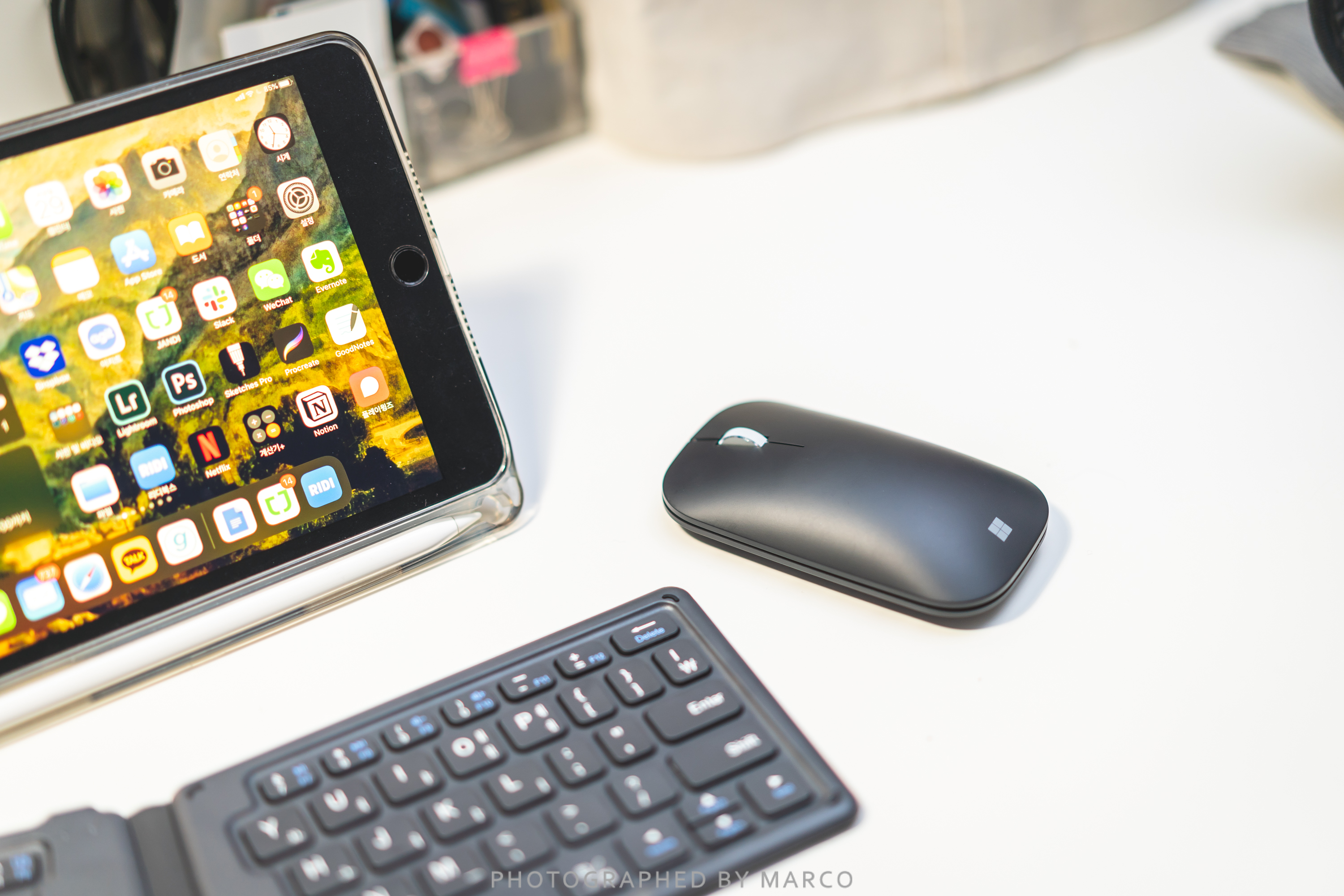 그리고 작년 가을 iOS 13 업데이트로, 아이폰, 아이패드에 블루투스 키보드, 마우스, 저장 장치 등 주변기기 사용이 가능해 진걸 알게 되었다.(이제서야!) 덕분에 '아이패드 미니5'도 컴퓨터 처럼 마우스와 키보드를 연결해 문서, 엑셀, 파워포인트, 사진, 동영상 편집 등의 작업이 가능해졌다. 그래서 아이패드와 함께 사용 할 가볍고 사용성 좋은 주변 기기들을 찾기 시작했다.