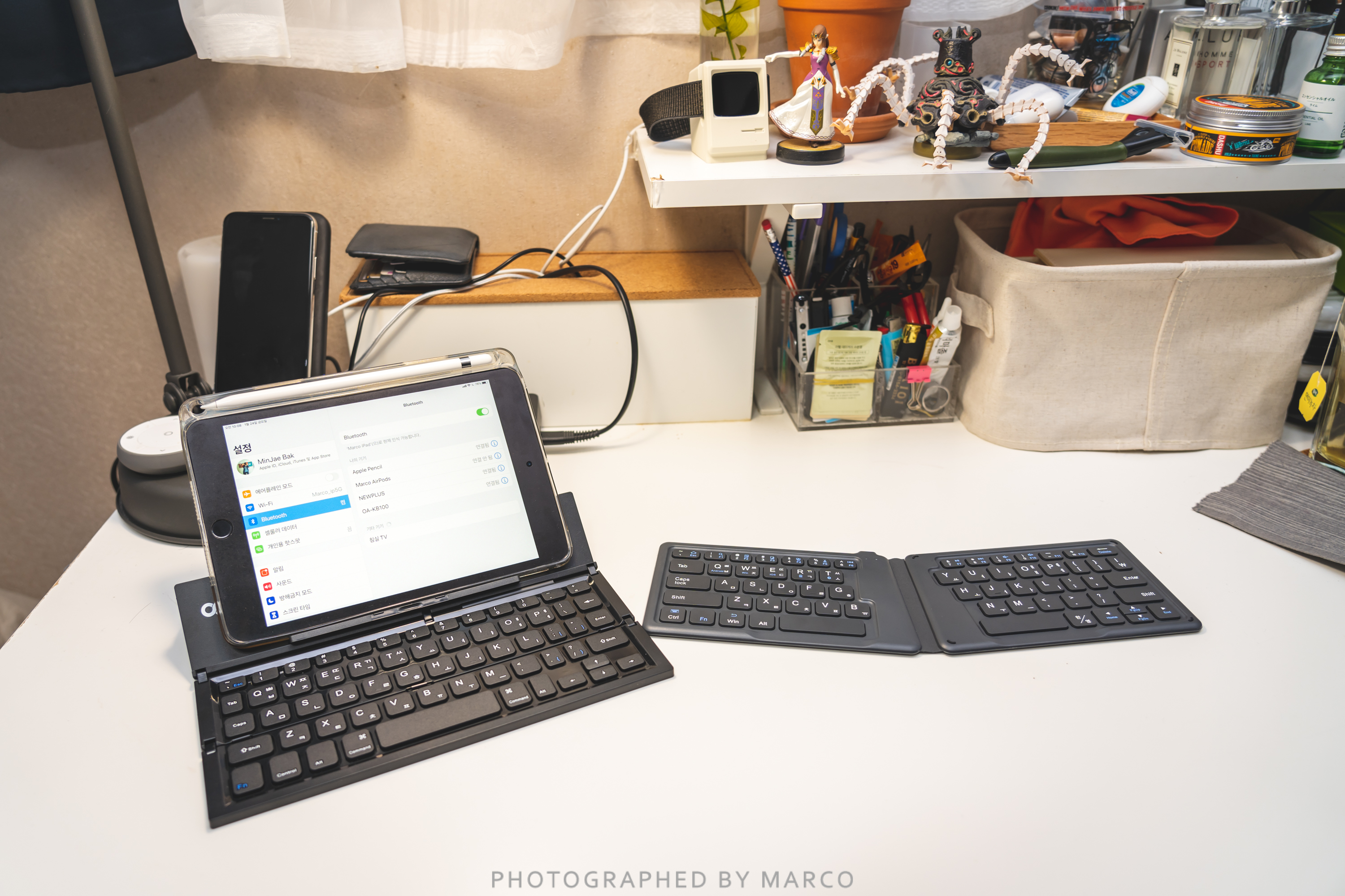 오아 접이식 키보드는 거치대가 필요없고 일자형 구조가 맘에 들었고, 뉴플러스 키보드는 가벼운 무게와 편한 타자감이 맘에 들었다(ㅠ자의 배치만 빼고!!)