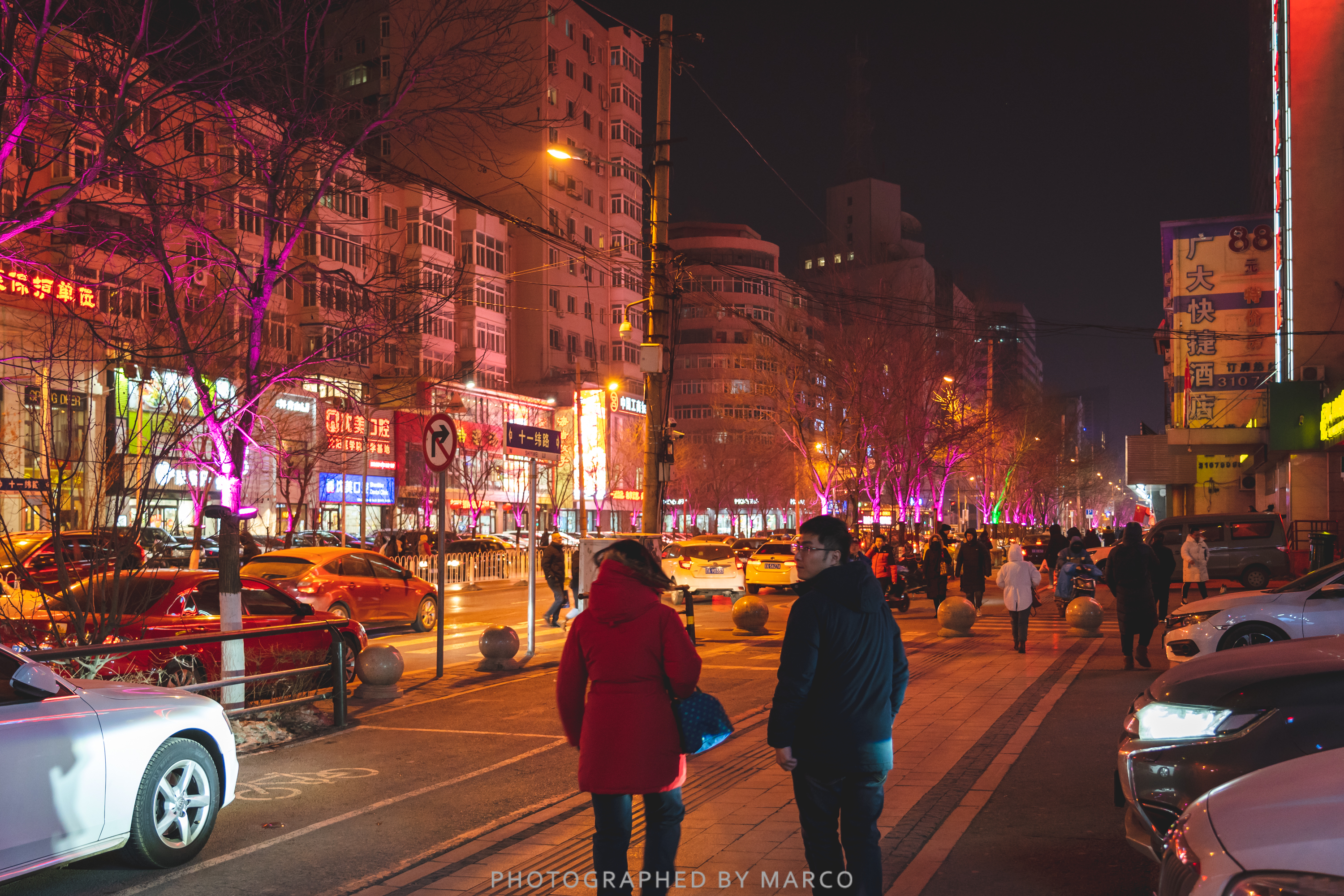 저녁에 더욱더 화려한 선양의 핑크빛 거리