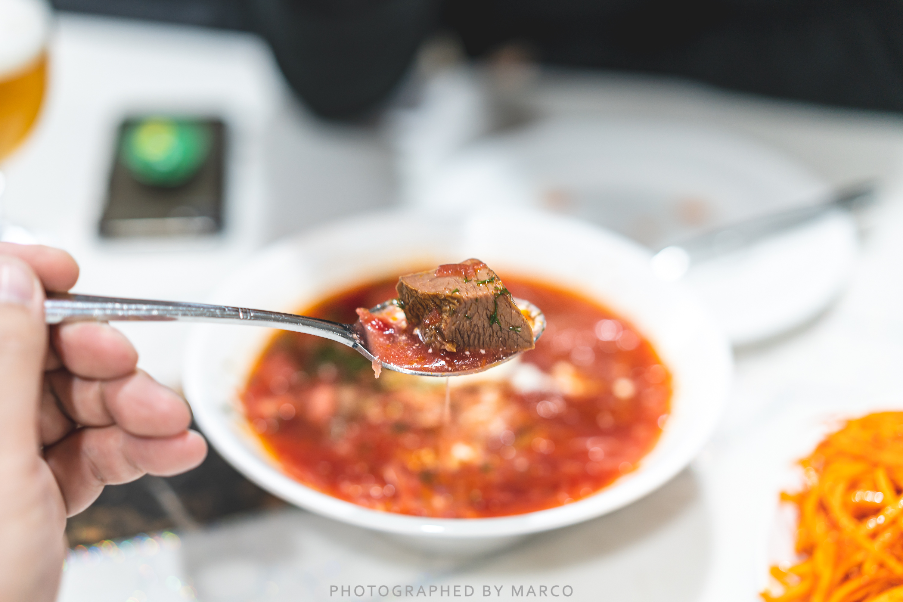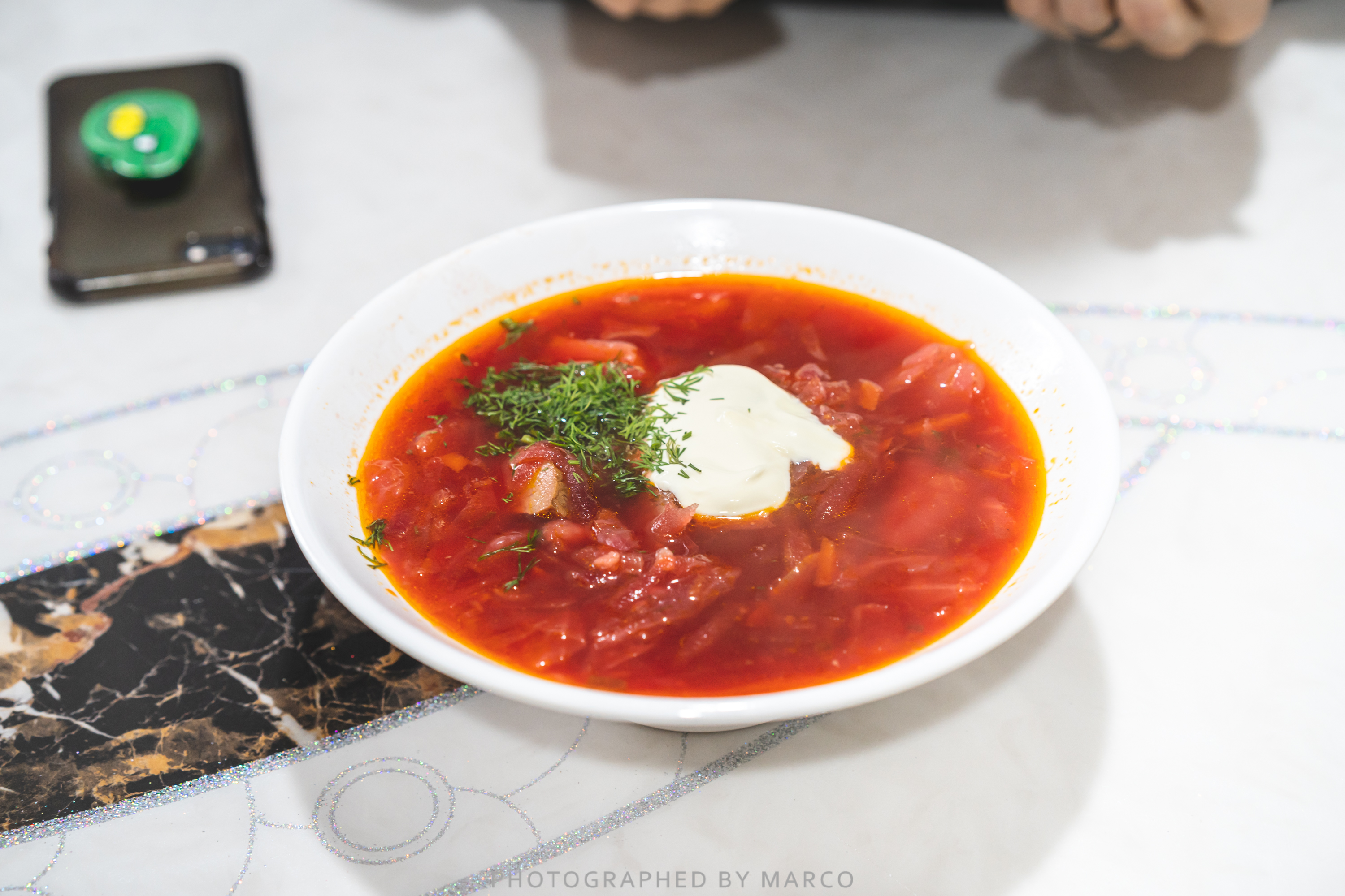 크림과 두툼한 소고기, 비트가 어우러진 보르쉬~