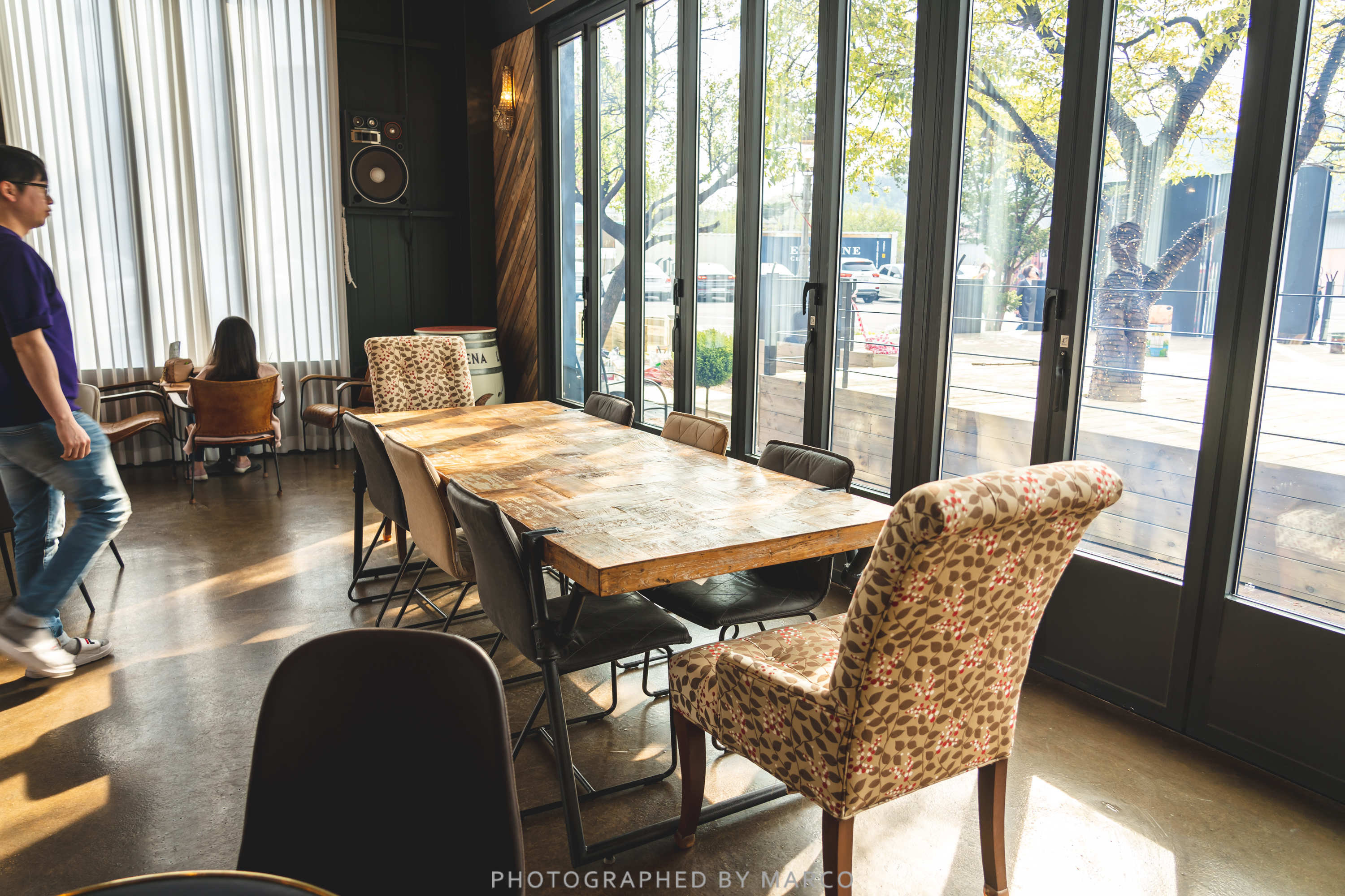 멋진 테이블 위에 커피 놓고 찰칵 찍고 밖구경~