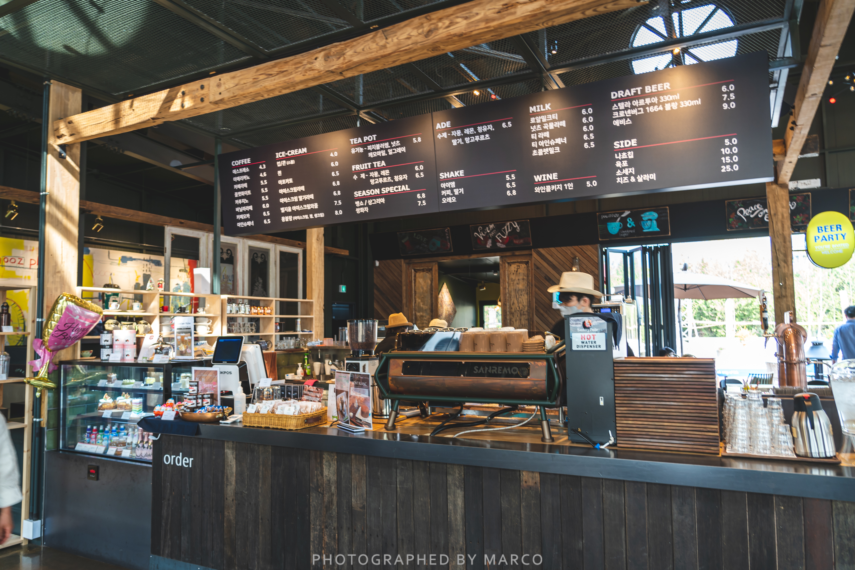 주류마켓에서 구입을 마치고 나와 근처 카페로 향했다.
