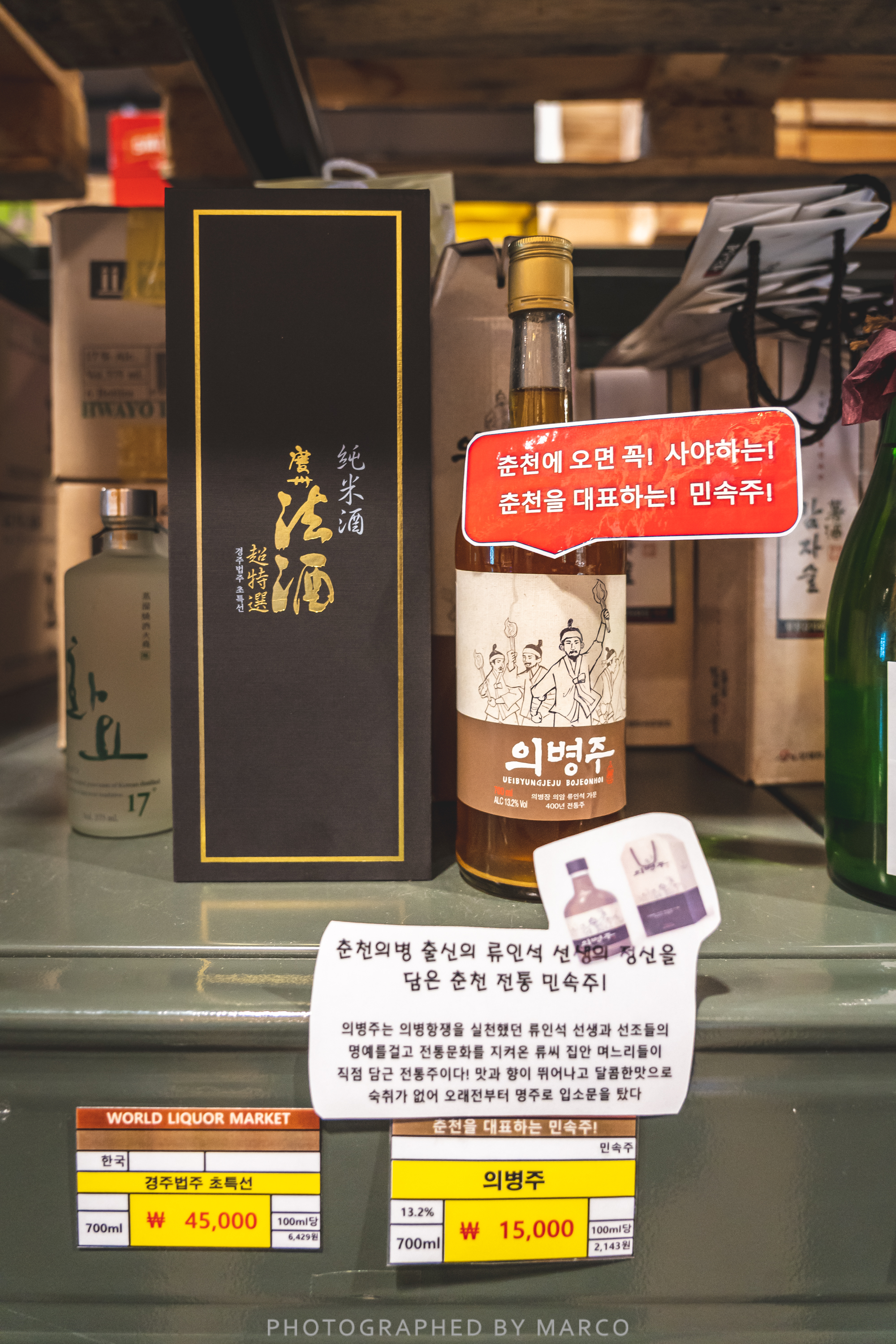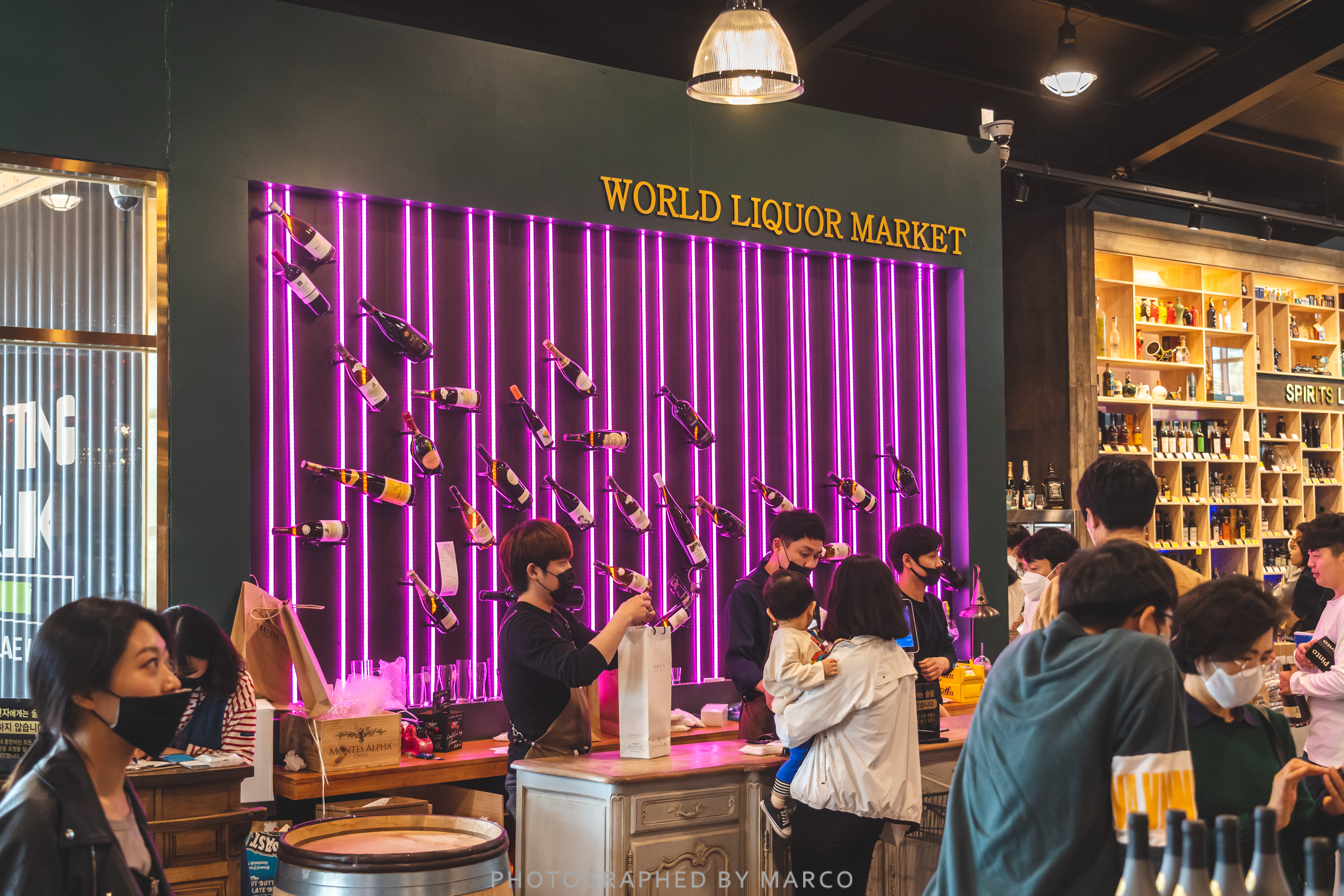 와인, 코냑, 위스키, 리큐르, 수제맥주, , 사케, 전통주, 소주 등등 각종 가격대의 술들이 그득하다.