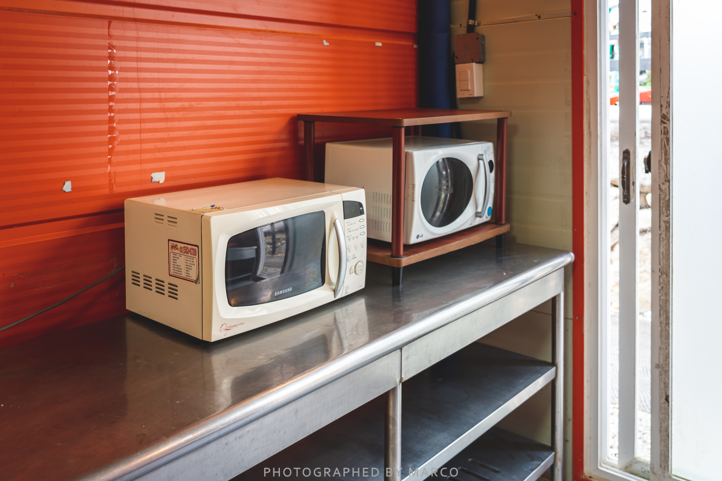 개수대에는 전자레인지도 있다.