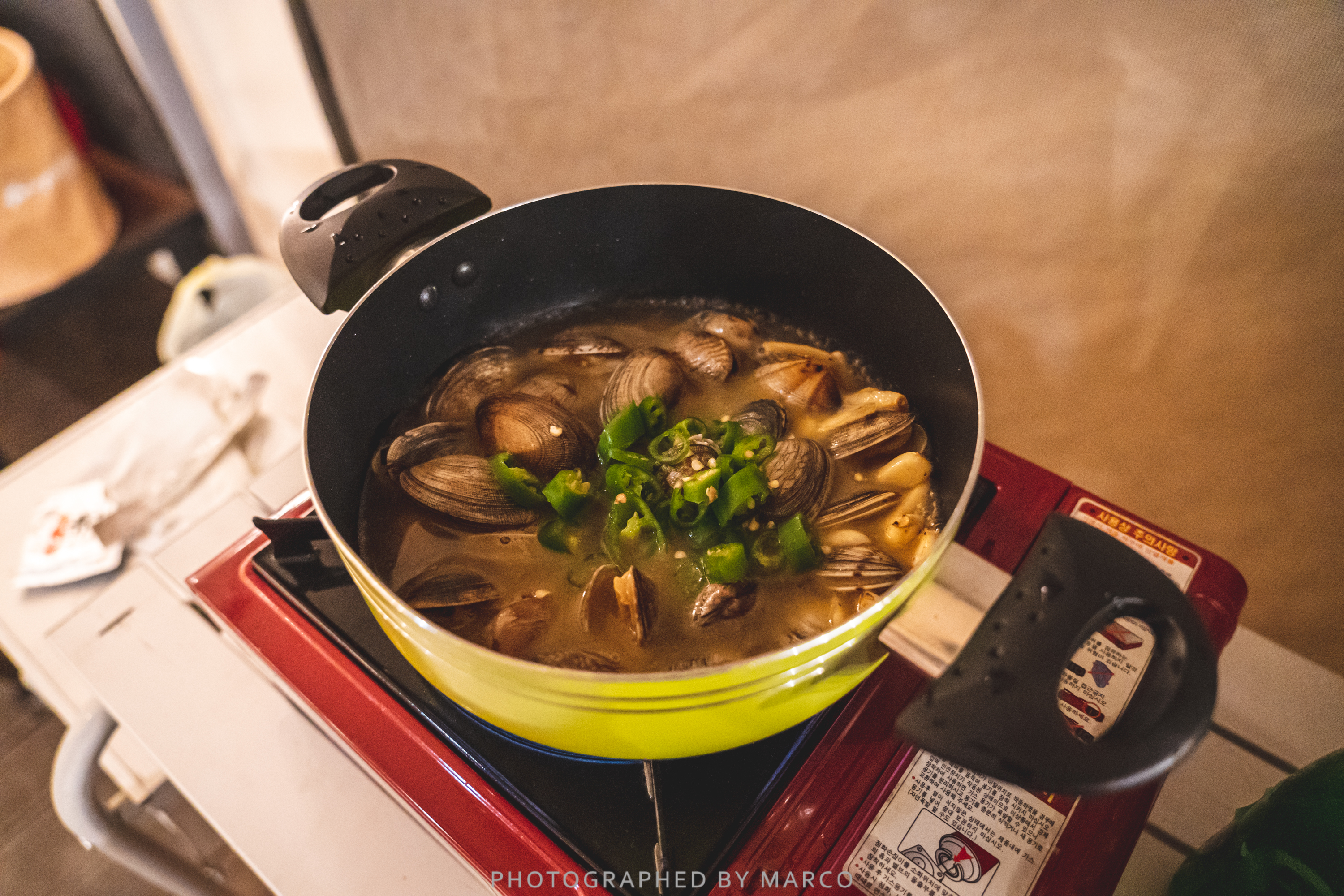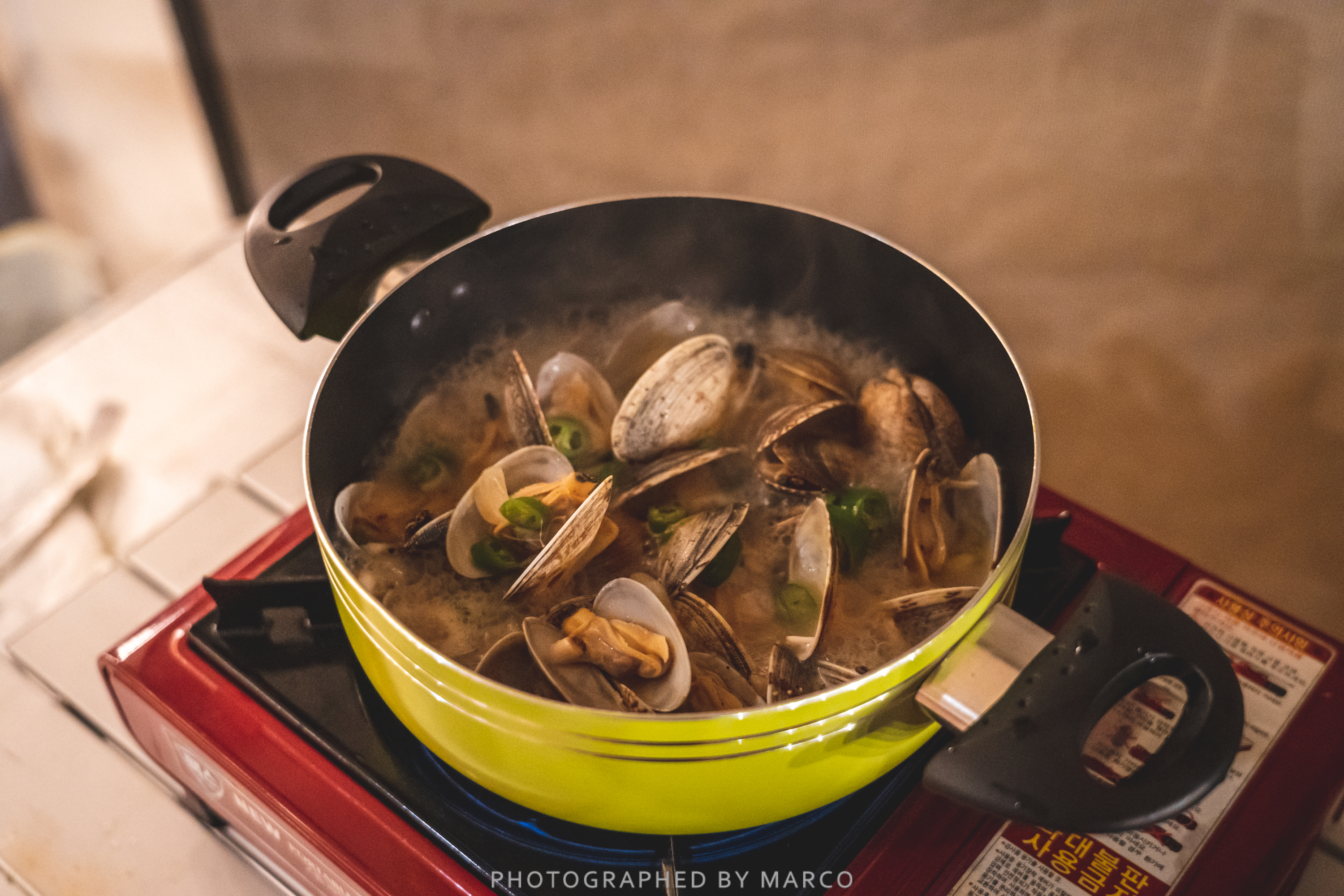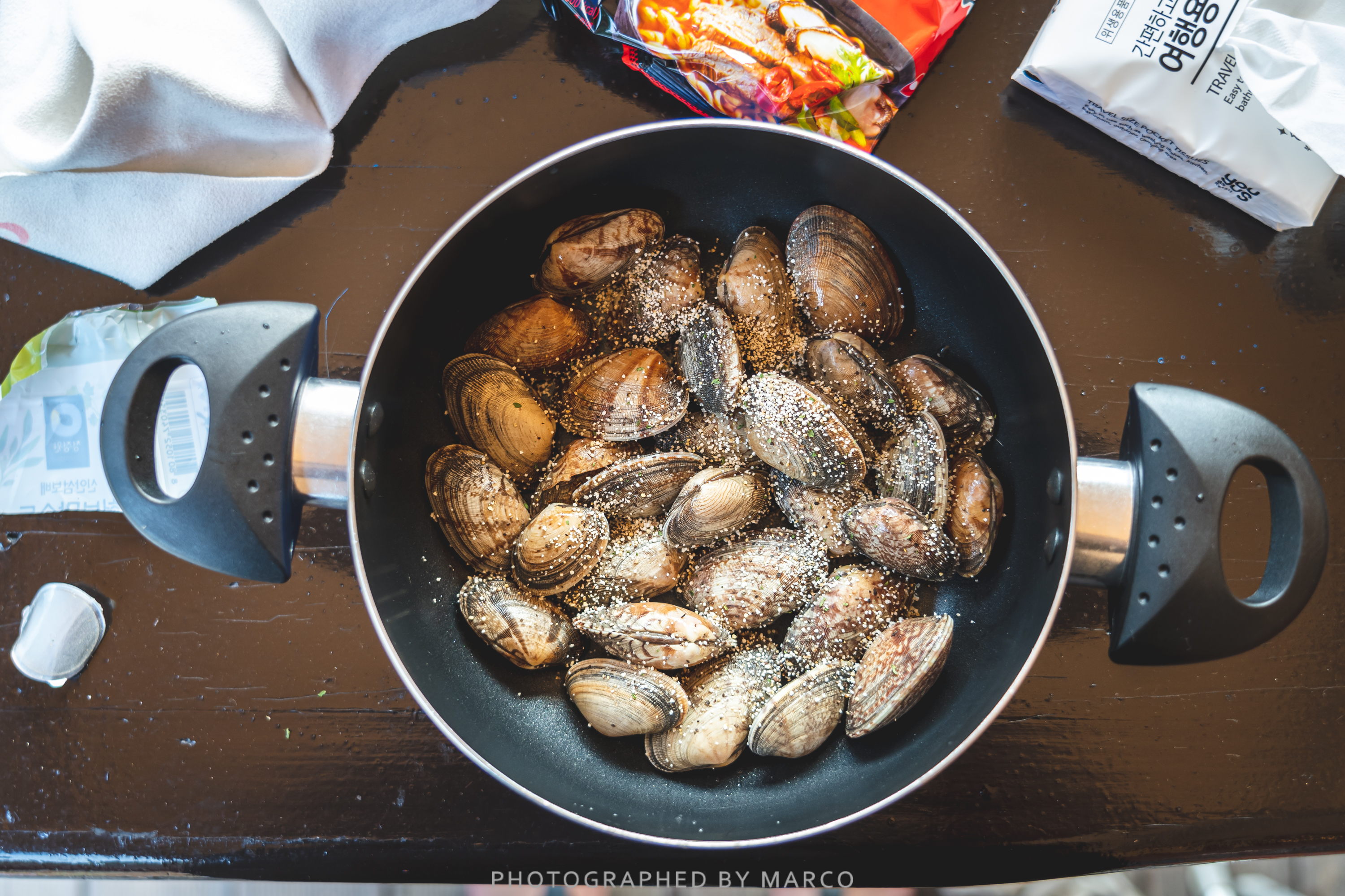재료는 바지락, 올리브 오일, 버터, 마늘, 청양고추, 술(청주, 소주, 청하, 화이트 와인 등 뭐든)만 있으면 OK