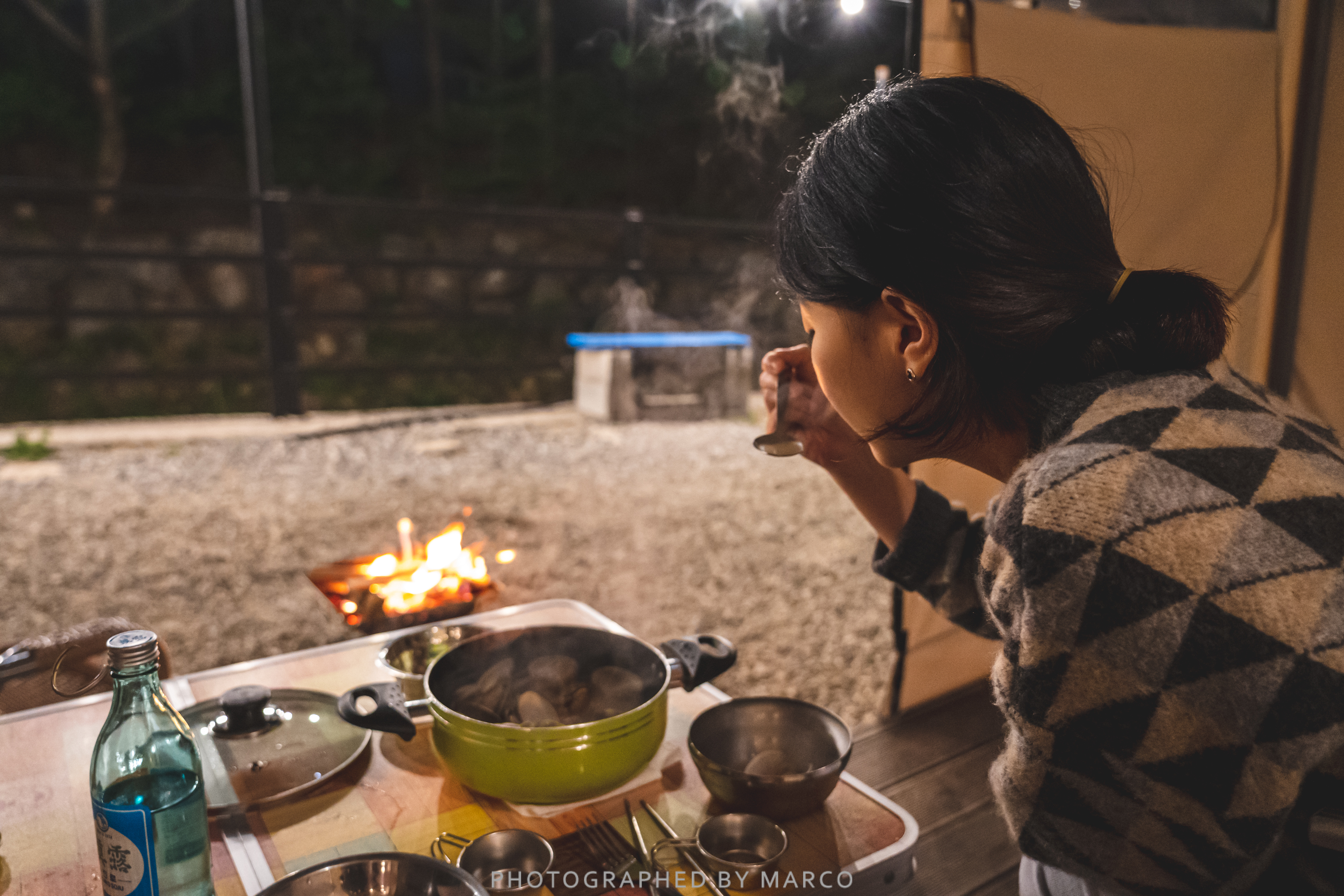 즐겁게 한잔하며 글램핑장의 밤이 깊어간다.