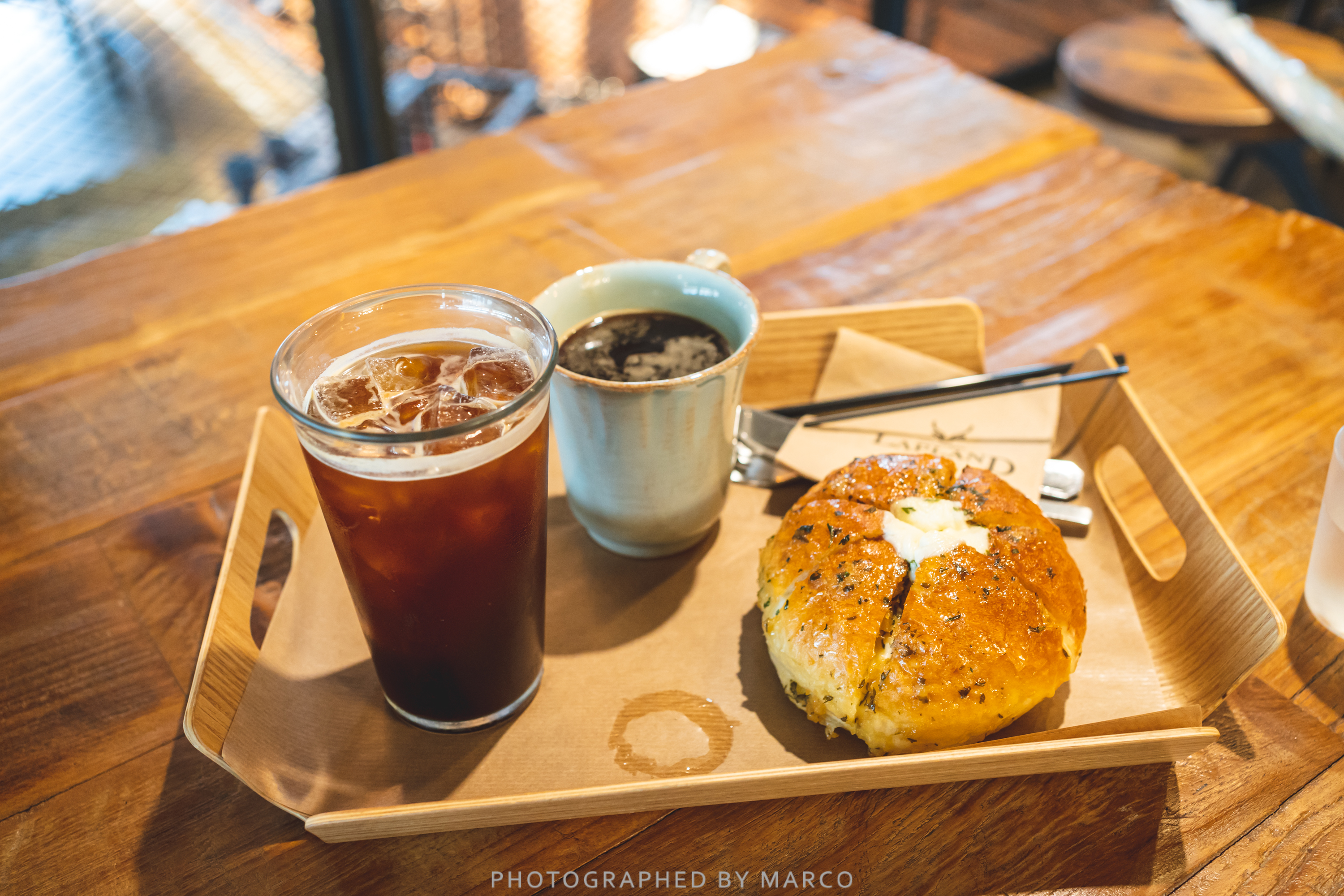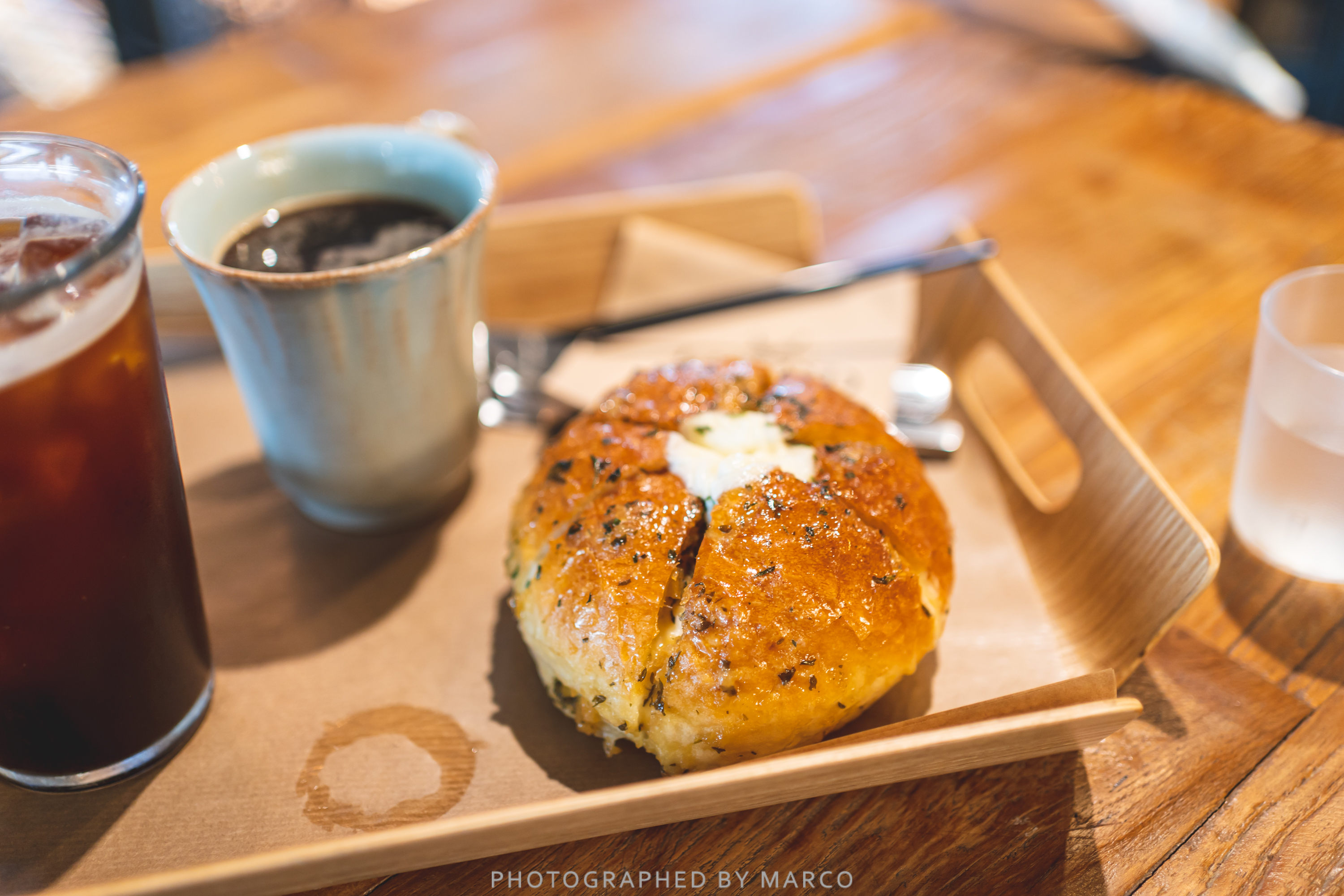 우리는 아메리카노와 마늘빵을 주문했다.