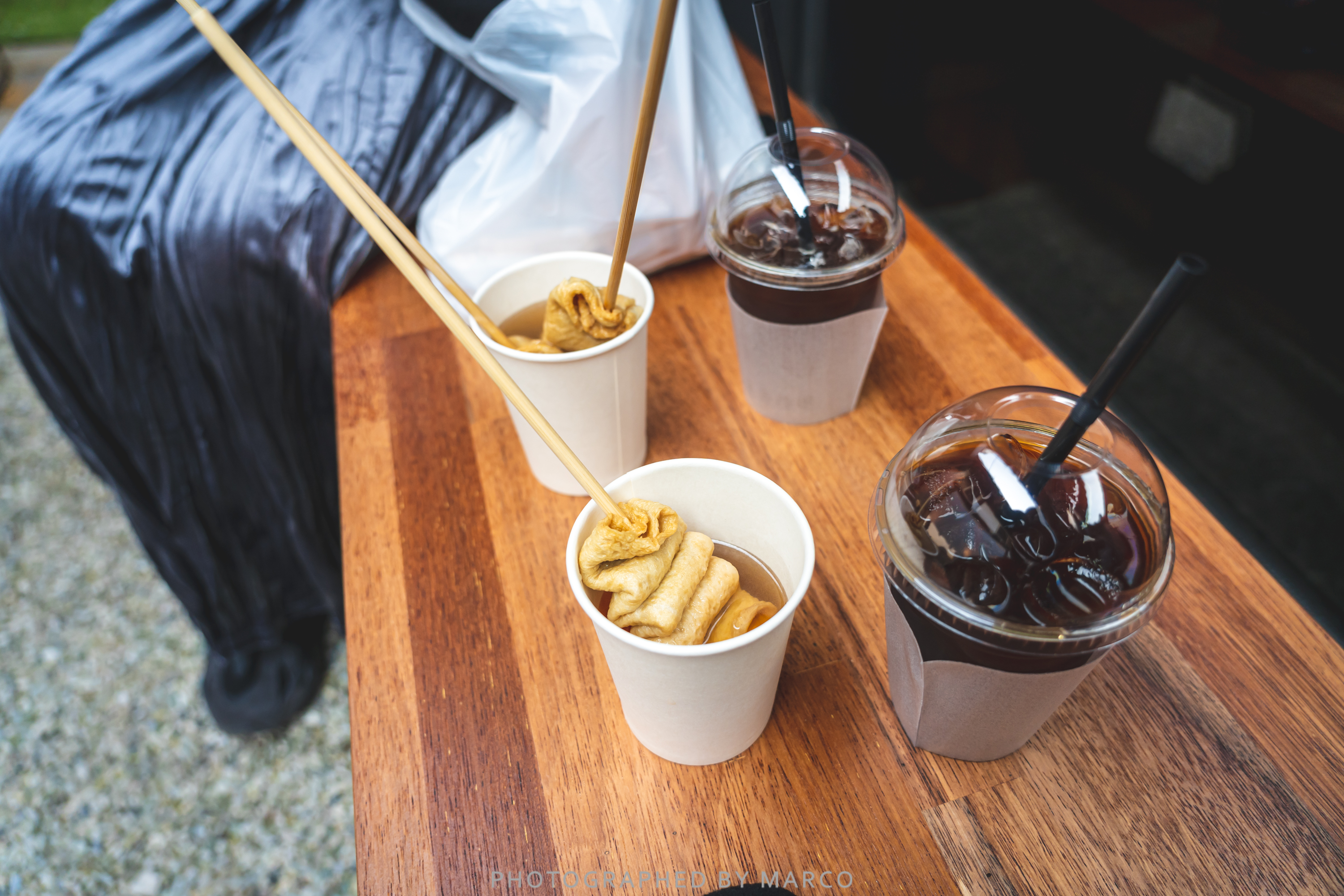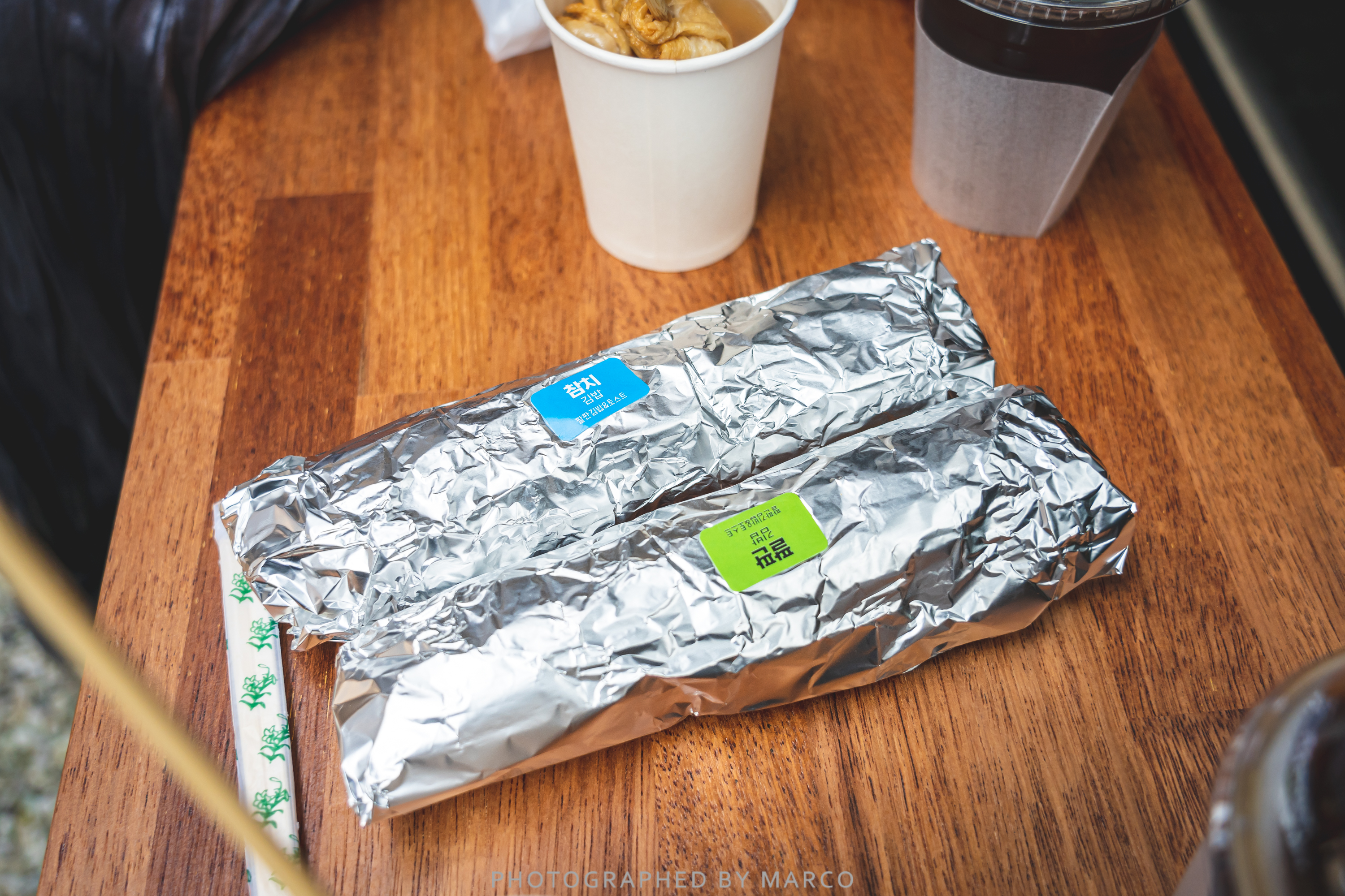가게 안에 자리가 없어서 어묵과 김밥 두 줄을 사와 구구 전시장 앞에서 먹었다.