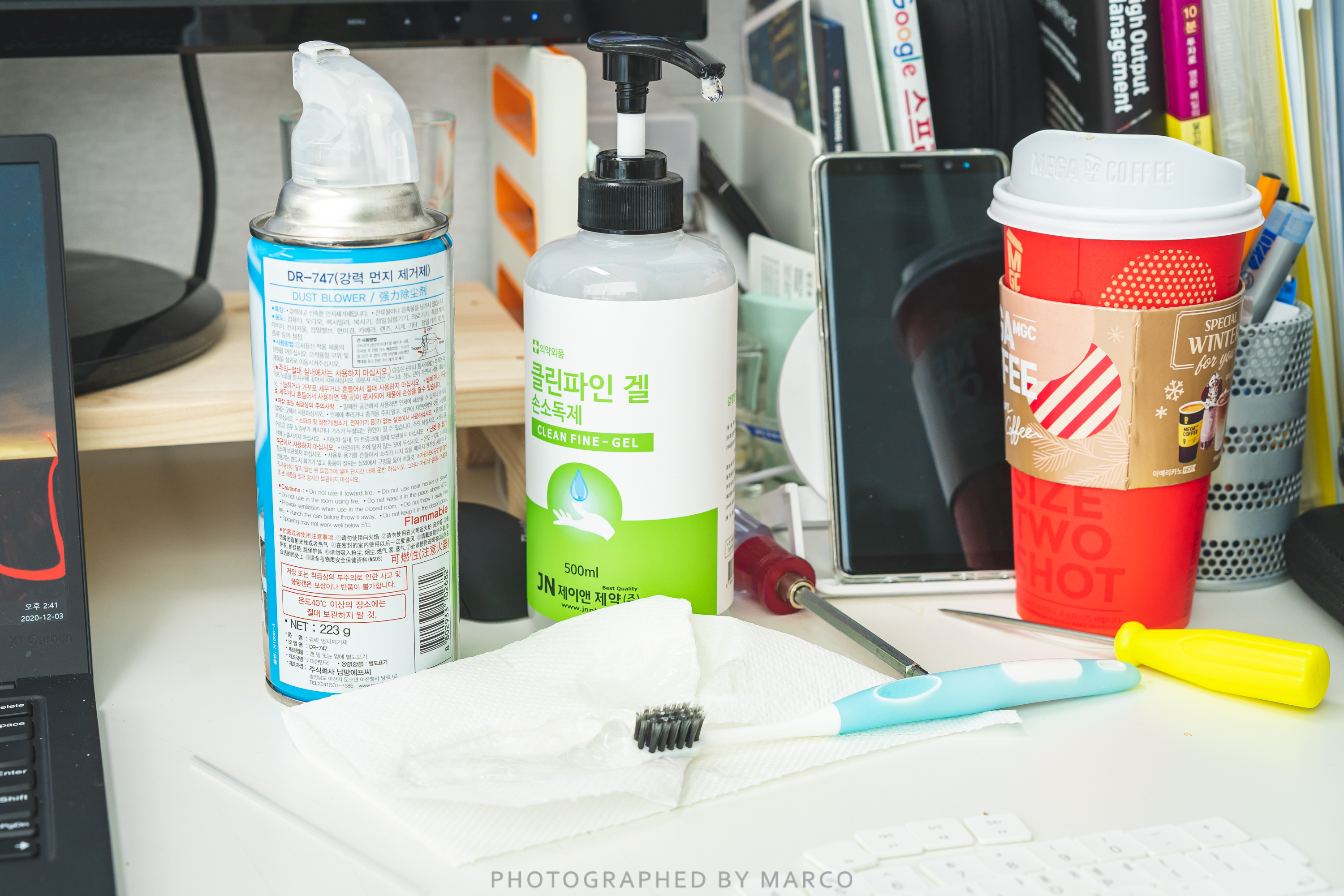 이 날은 급한 대로 손소독제를 이용했다.