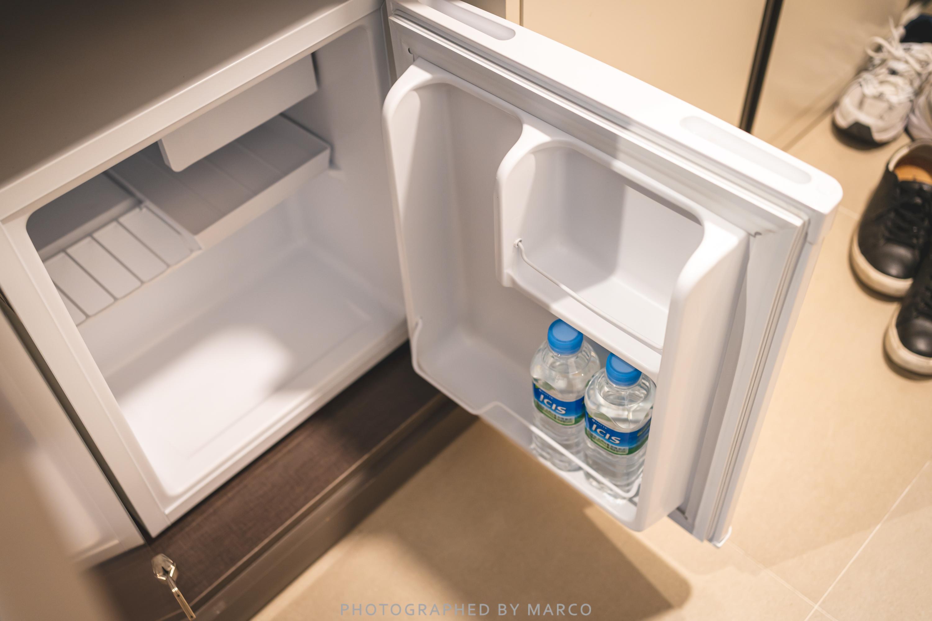 화장실 입구 옆에는 미니바와 냉장고가 위치해 있다.