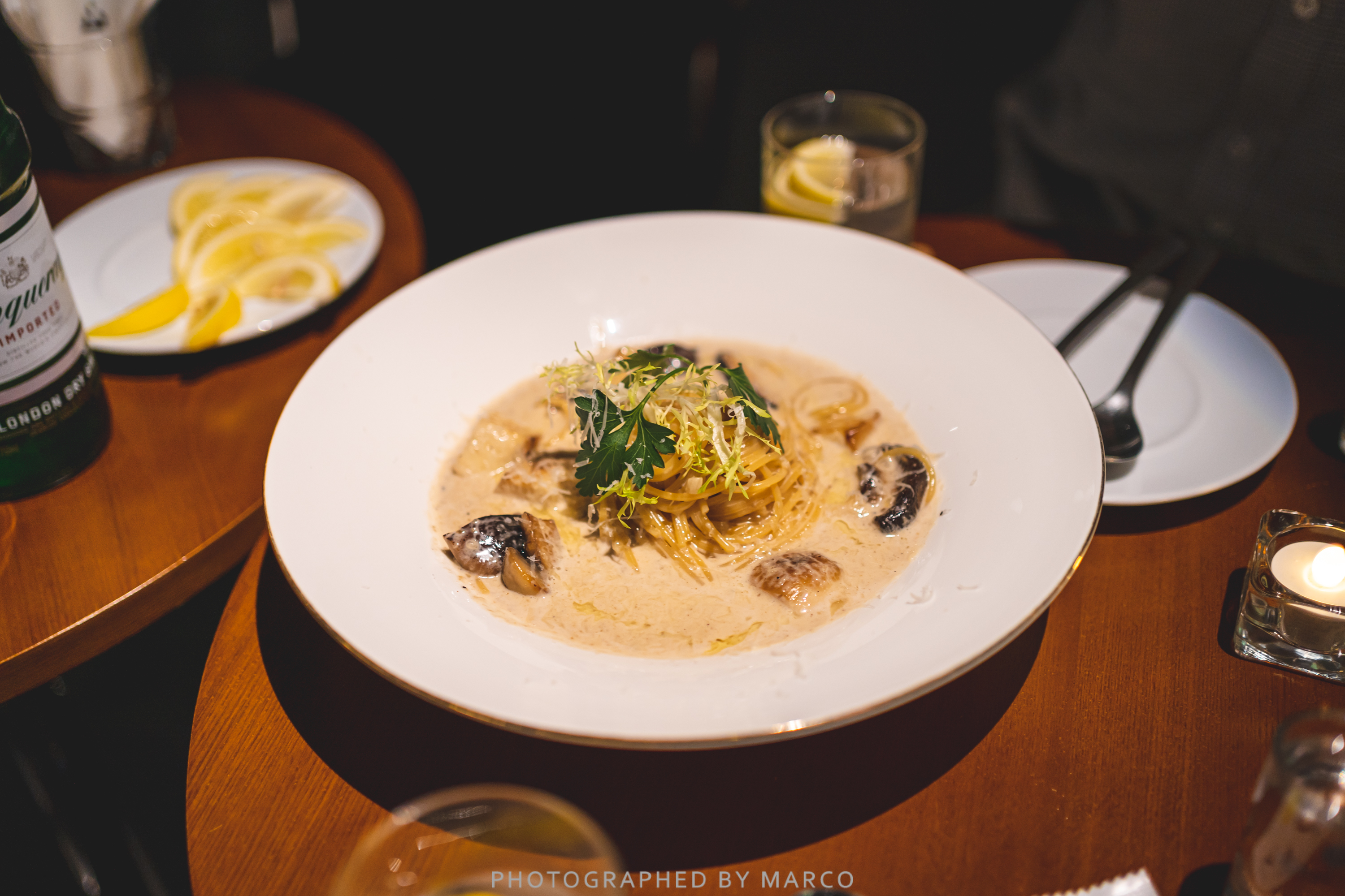 가격은 나름 저렴한 13만 9000원! (탱커레이 진 1병 + 음료 2개 + 피자 or 포르치니 버섯 크림 파스타 선택)