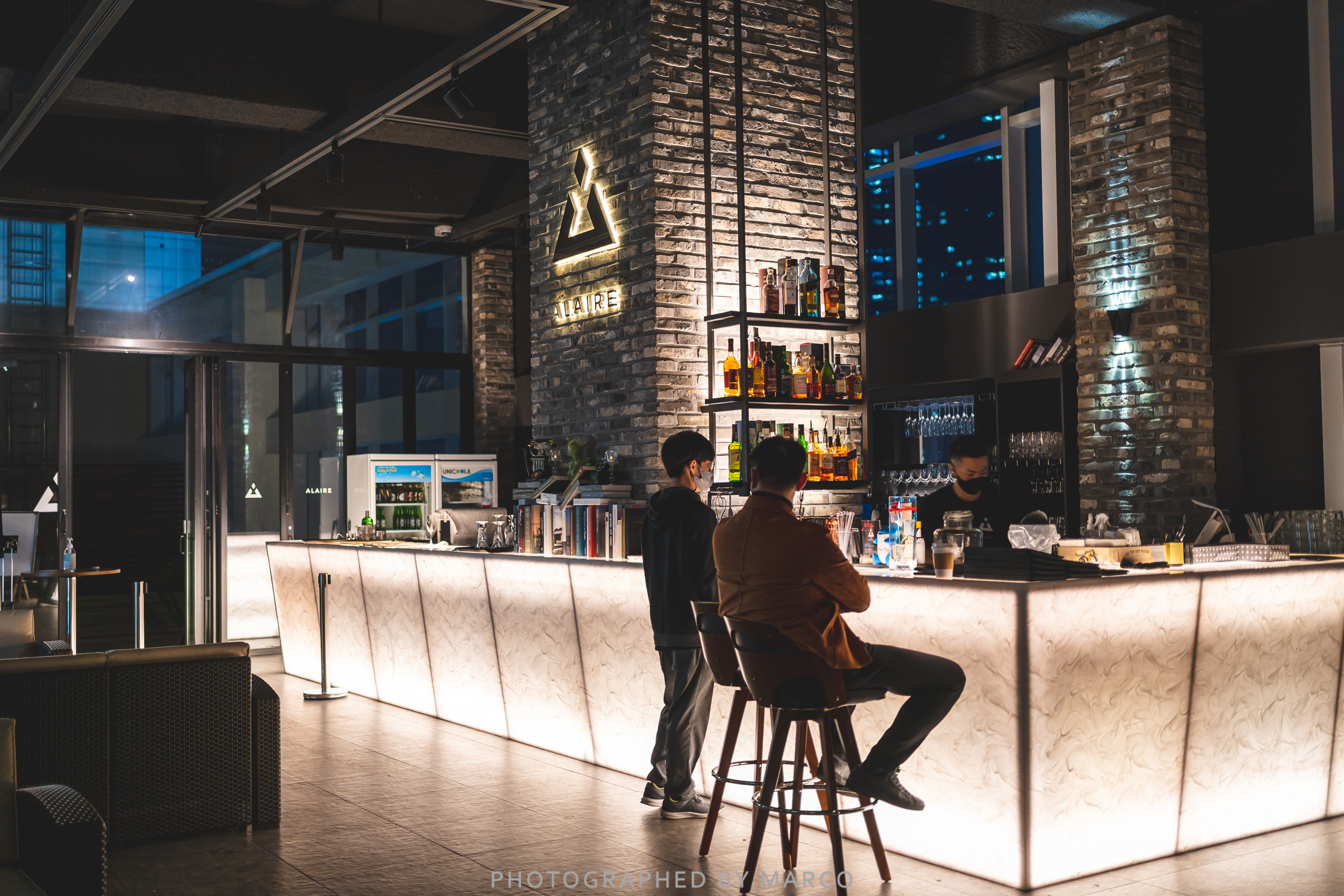 몸이 안 좋아서 그냥 자려다.. 그래도 아쉬워서 호텔 꼭대기에 위치한 '루프탑 바 알레어'에서 술을 한잔 하기로 했다.