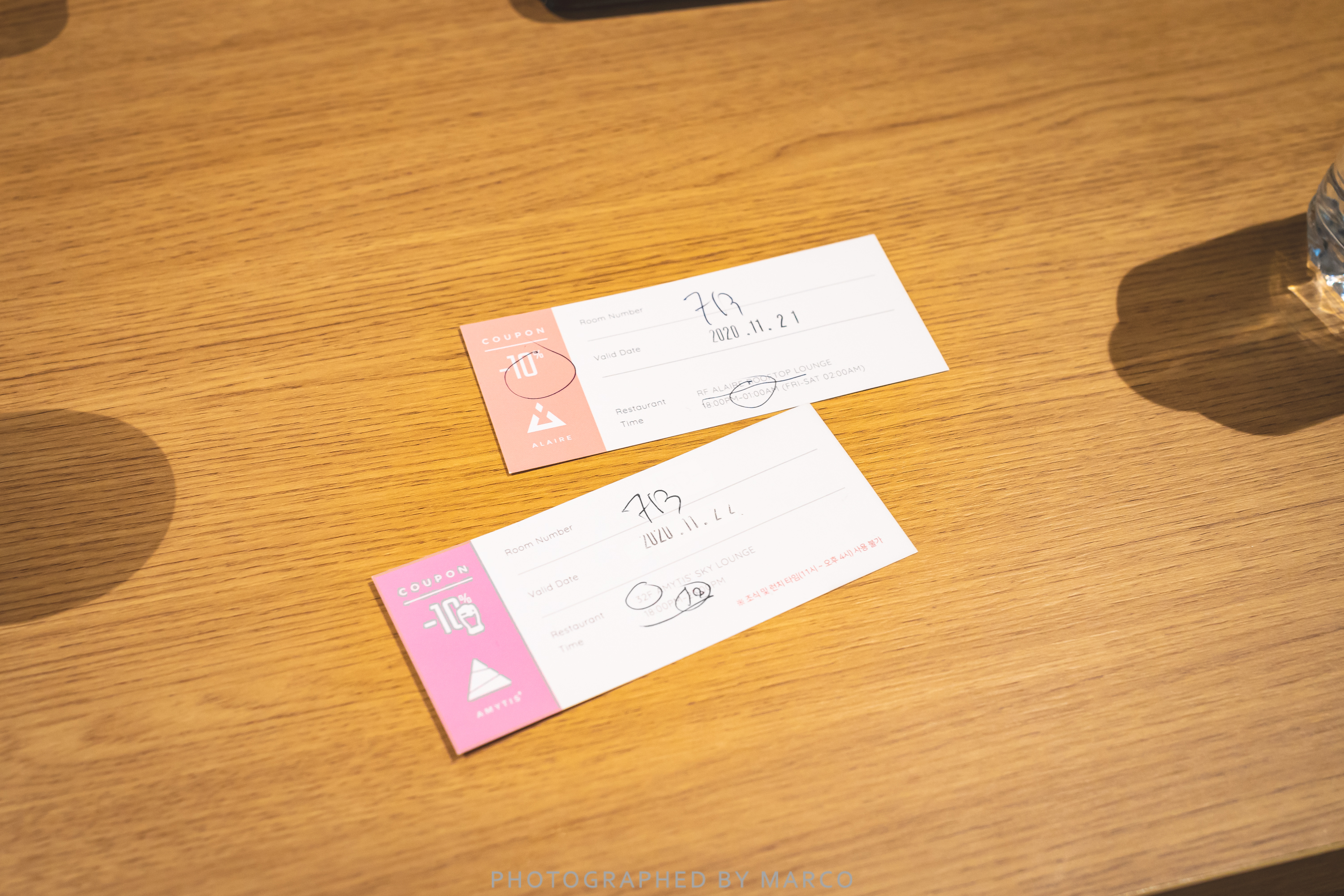 입장 때 준 루프탑 바 알레어와 아미티스 할인 쿠폰