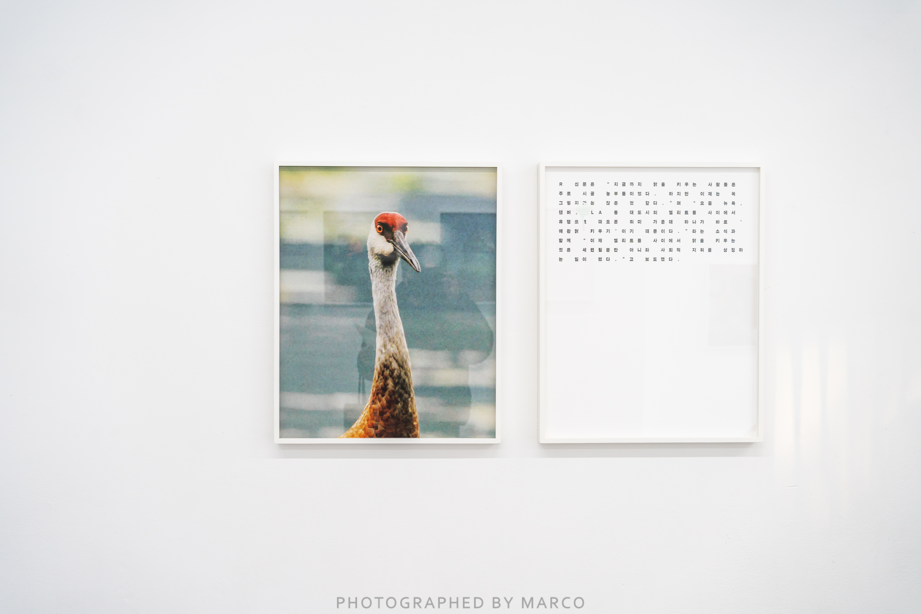 정희승은 그간 수집해 온 새 머리 사진을 펼쳐 보인다. 아둔한 사람을 ‘새 대가리’에 빗대어 말하고 영어식 표현에서도 멍청한 사람을 ‘birdman’이라 할 정도로 새의 머리에 대한 인식은 견고히 자리하고 있다. 하지만 이것은 인간 중심적 사고에서 비롯된 이미지(작은 새의 머리 크기)가 가져오는 편견이고, 새는 우리가 상상할 수 없을 정도로 영리하다는 사실이 많은 연구에서 이미 밝혀졌다.
