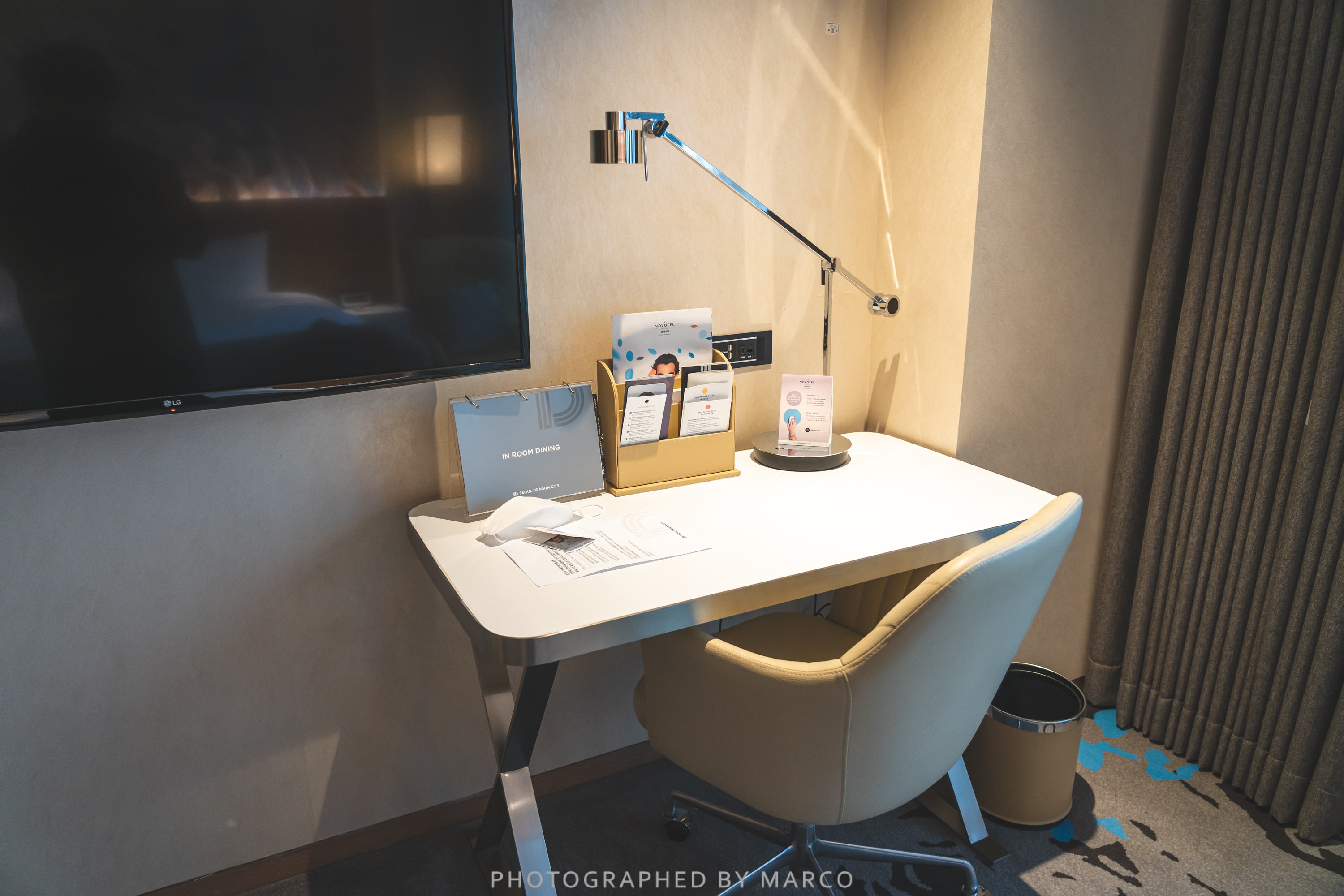 책상과 스탠드, 룸서비스 메뉴판