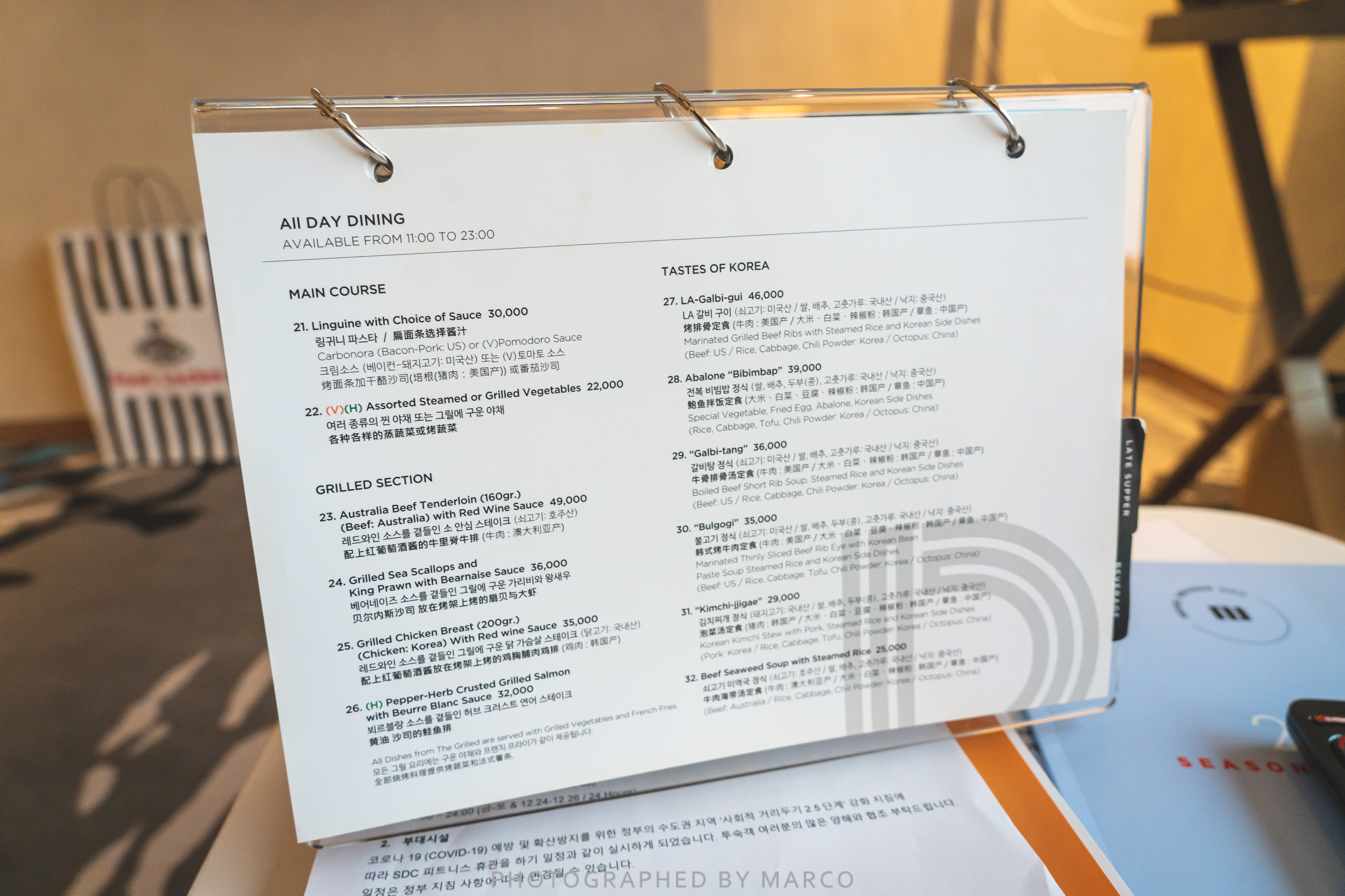 룸서비스 메뉴판