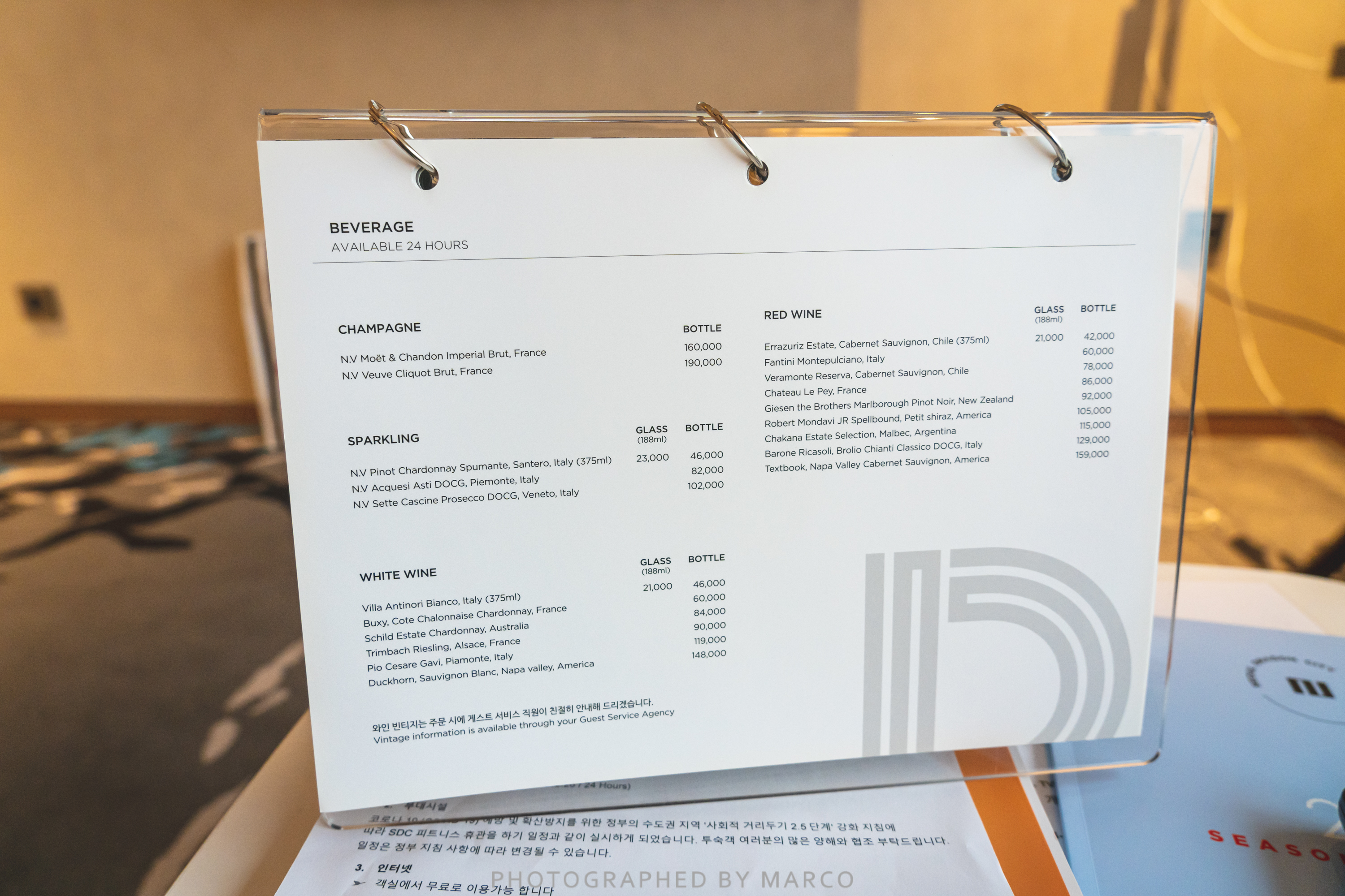 룸서비스 메뉴판