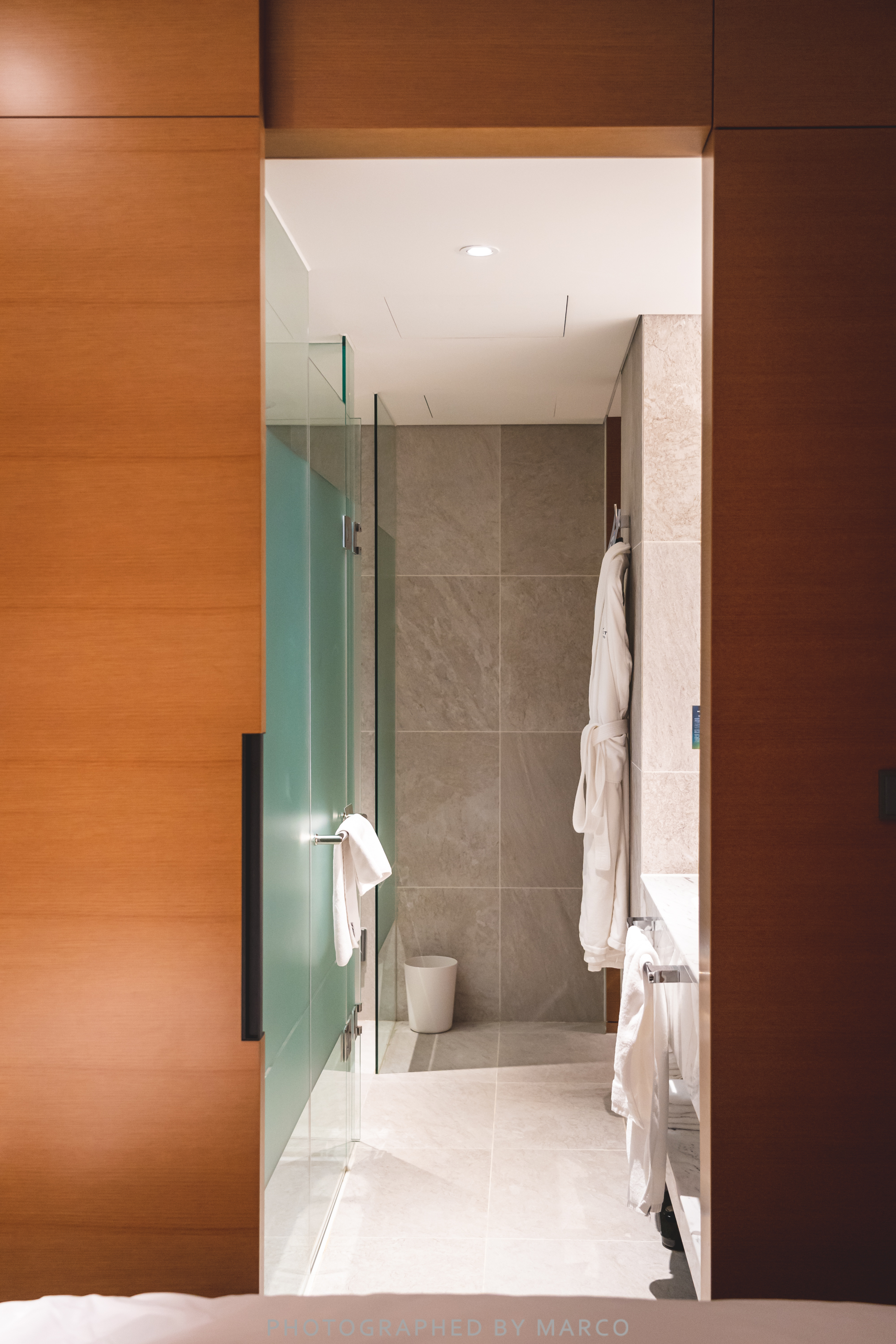 주니어 스위트 더블룸에 욕조는 없고 샤워실만 있다.