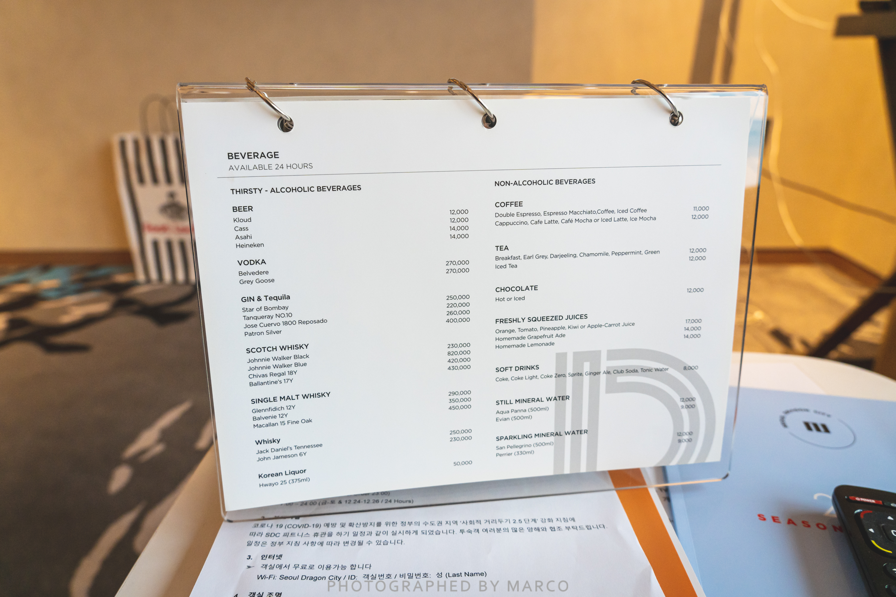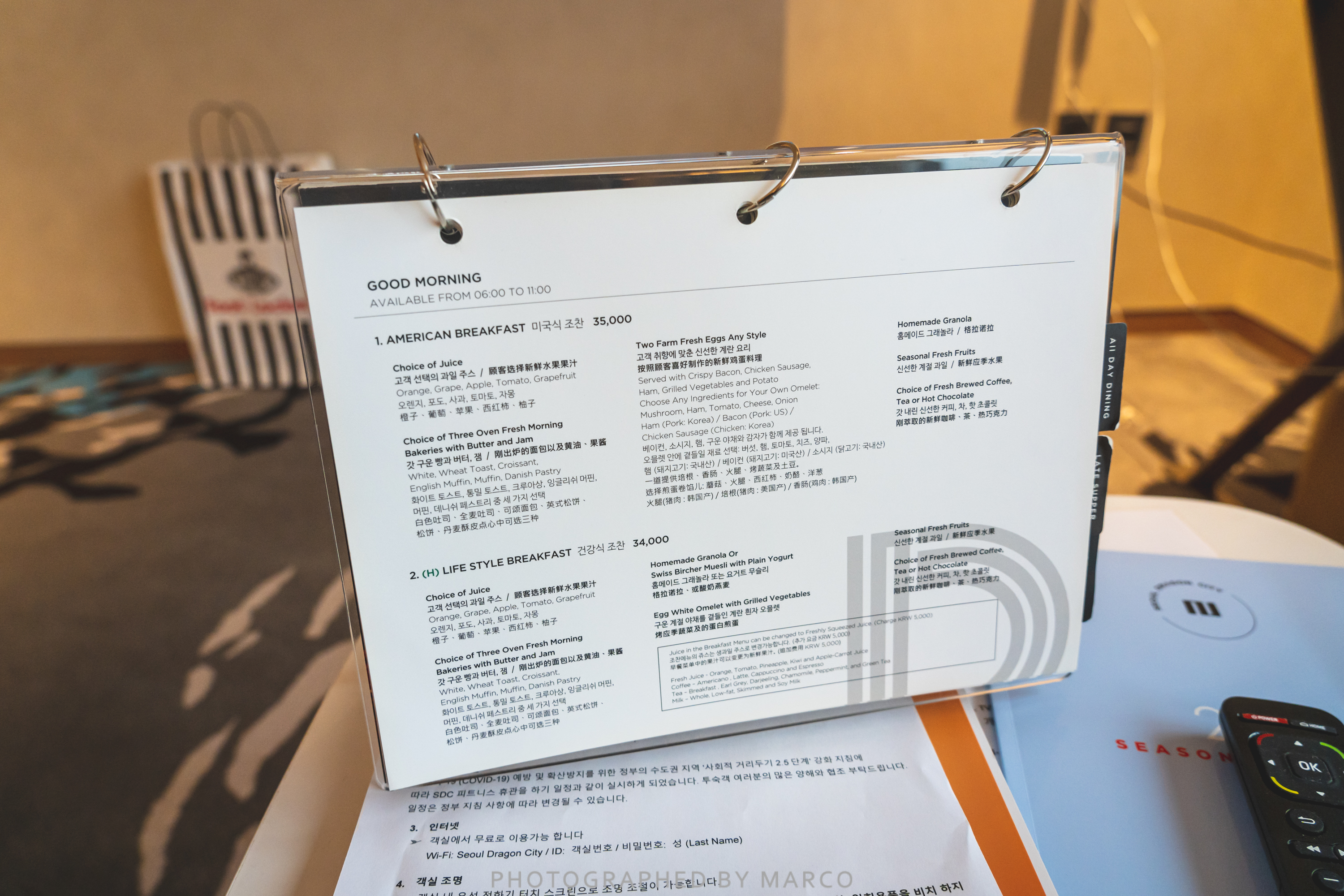 책상과 스탠드, 룸서비스 메뉴판