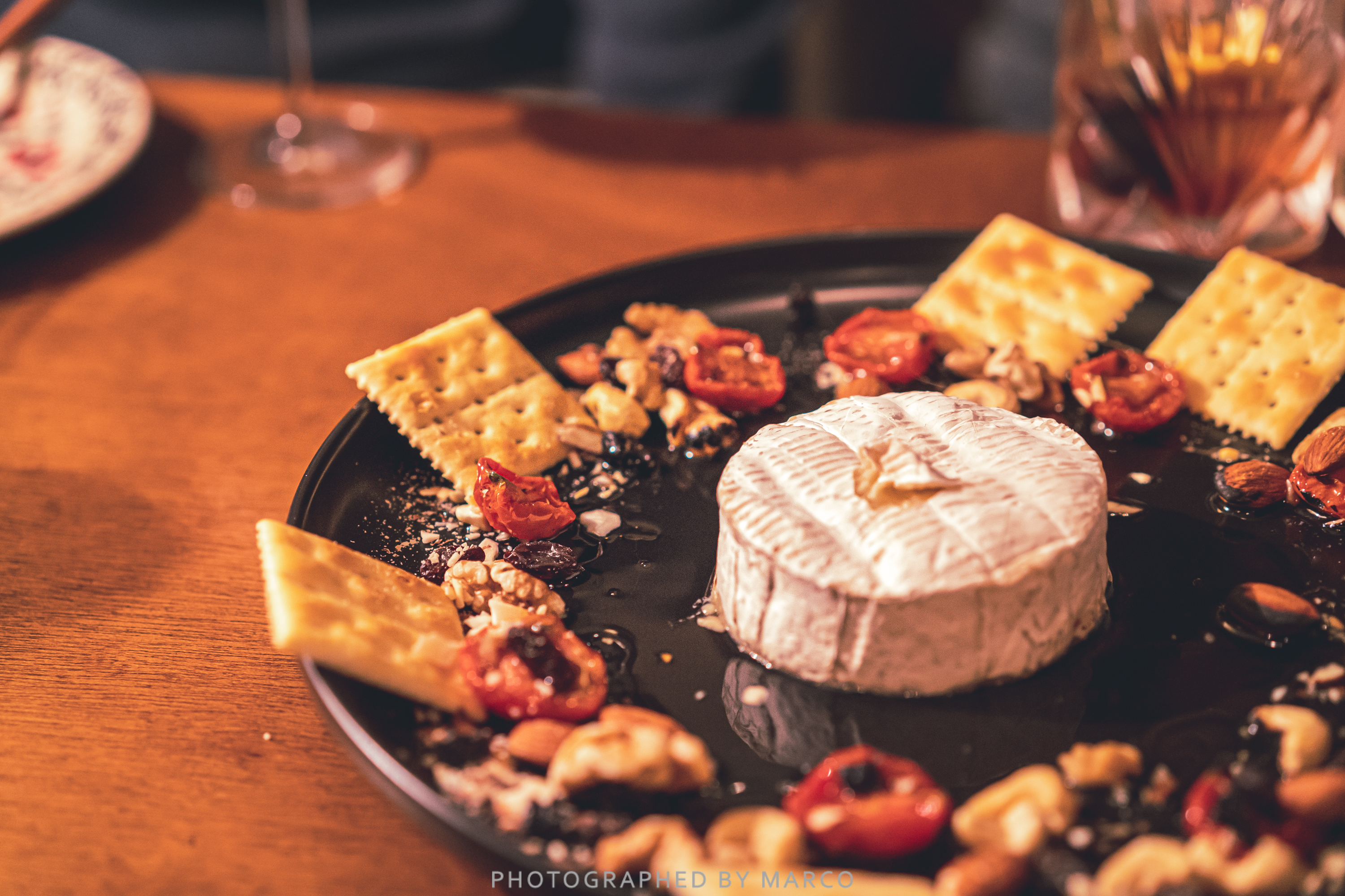 까망베르 치즈와 견과류, 비스킷, 토마토가 어우러져 안주로 참 좋다.