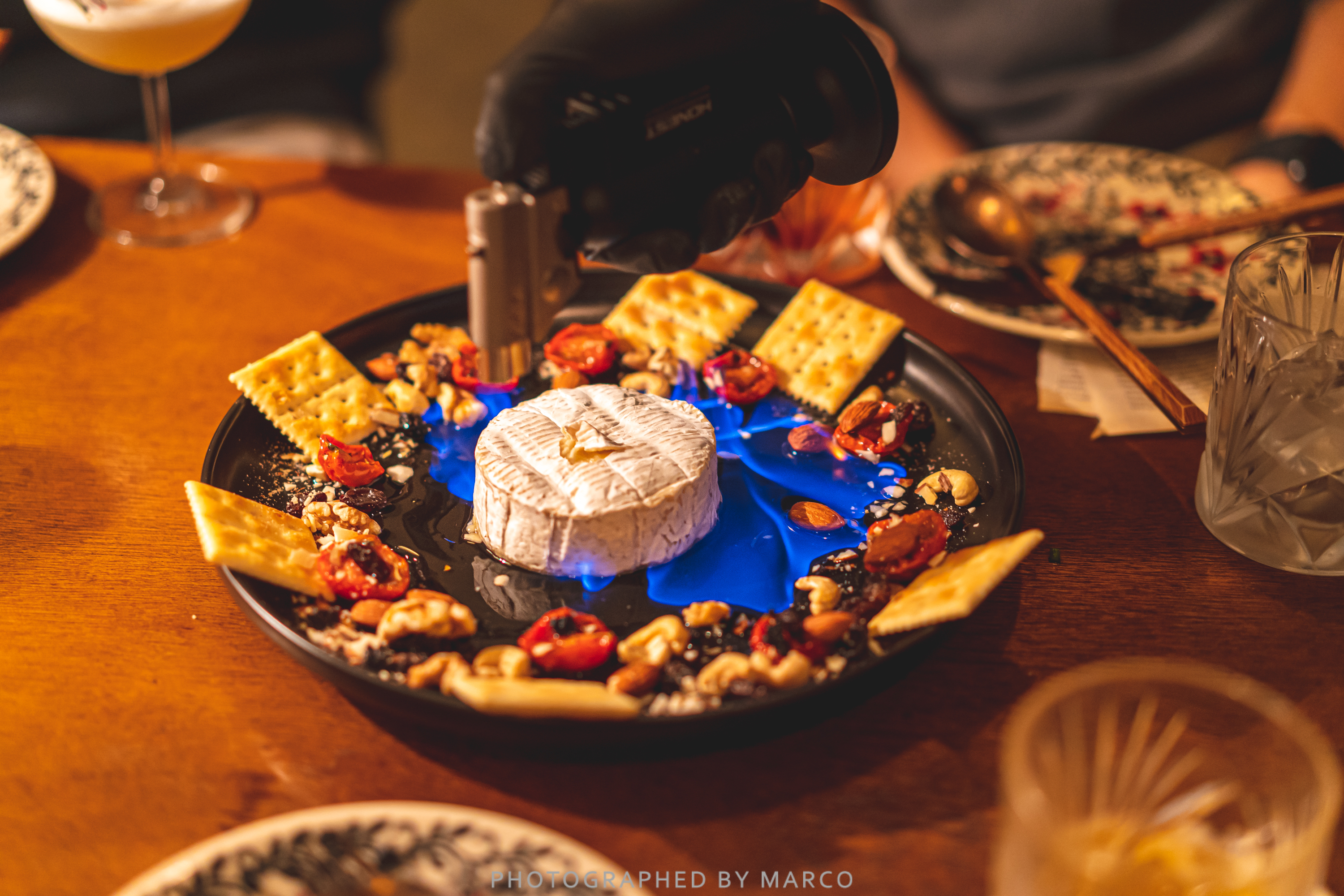 까망베르 치즈와 견과류, 비스킷, 토마토가 어우러져 안주로 참 좋다.