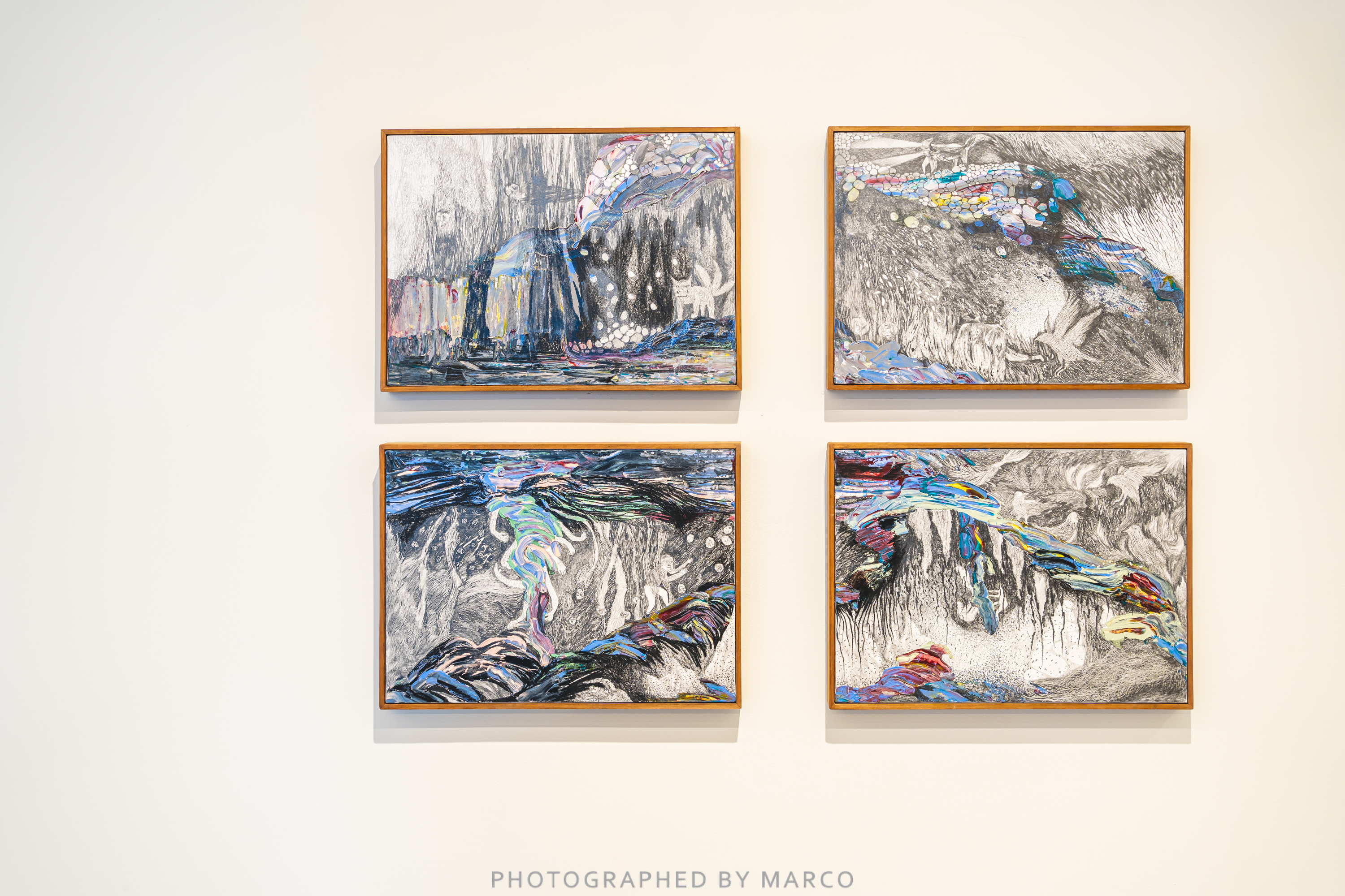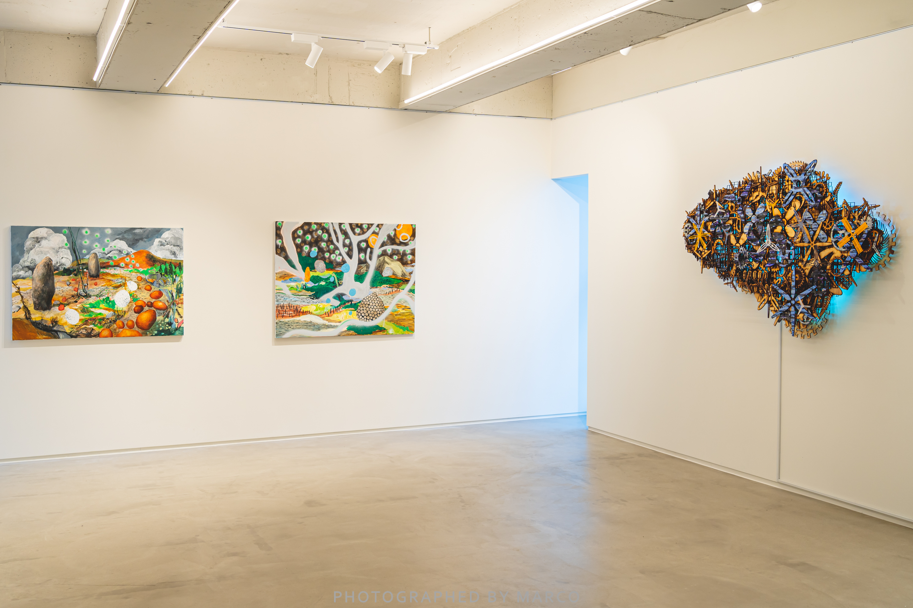 이아현은 바라보는 주체에 따라 달라지는 대상을 인지하는 방법을 모색합니다. 스스로 곤충이 되어서 곤충의 시점과 관점을 통해 바라본 변환과 가공의 시공간이 구축됩니다. 현미경으로 식물세포를 관찰하듯 곤충의 눈으로 감지한 확대된 풍경과 확장된 허공은 근경과 원경의 형상 안에서 비정형적 추상 이미지와 더불어 발산됩니다.