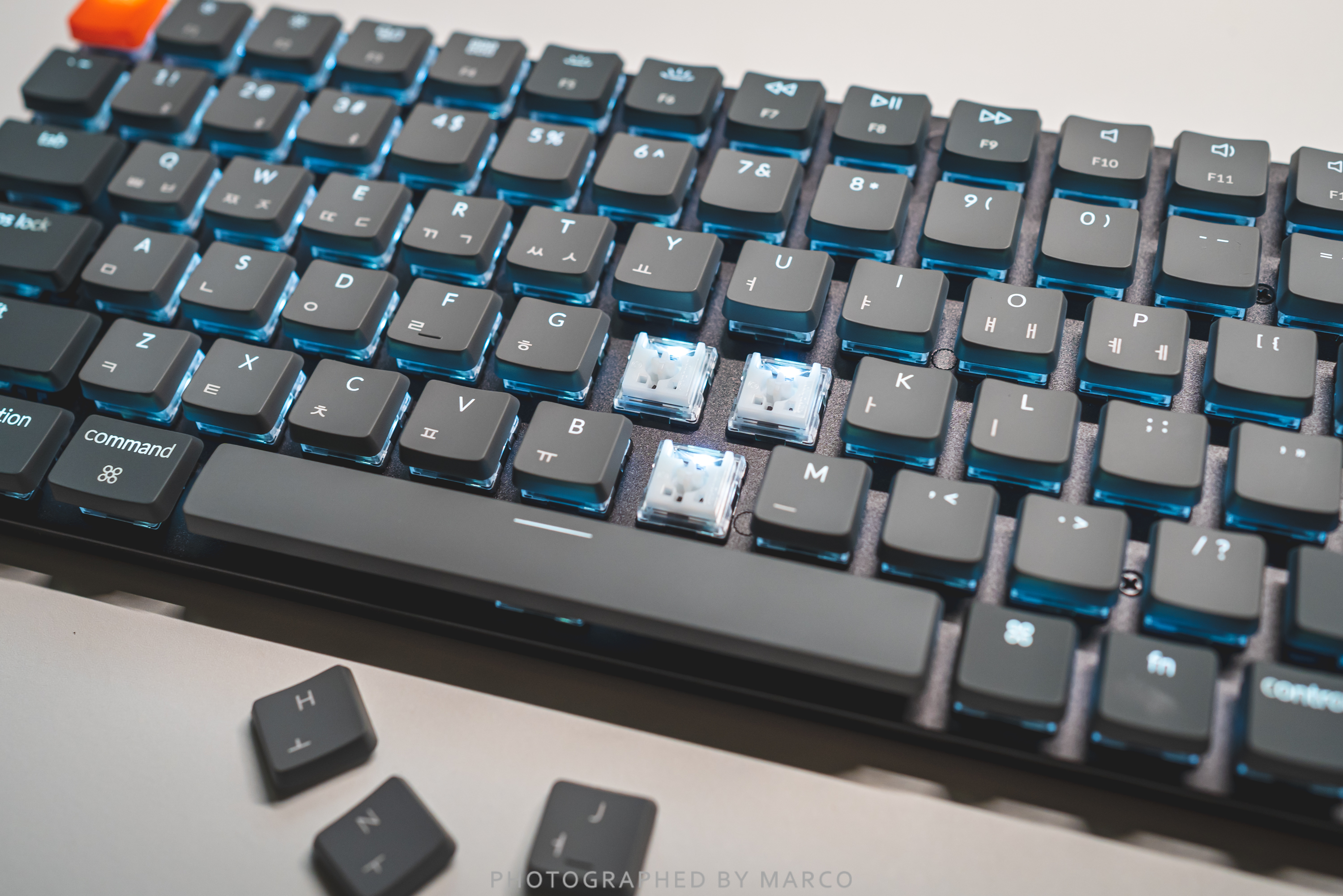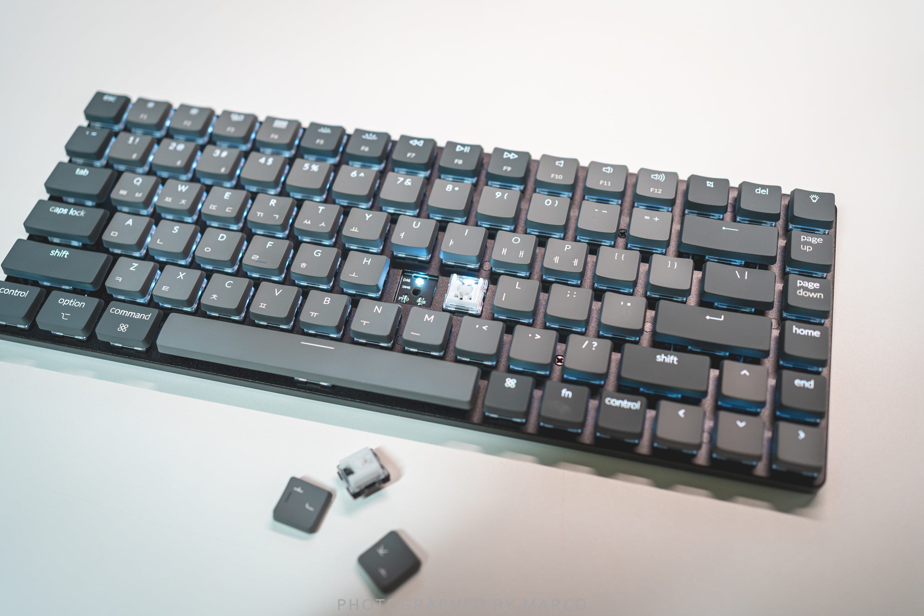 키크론 K3는 핫스왑 모델로 키캡은 물론 스위치도 교체 가능하다.