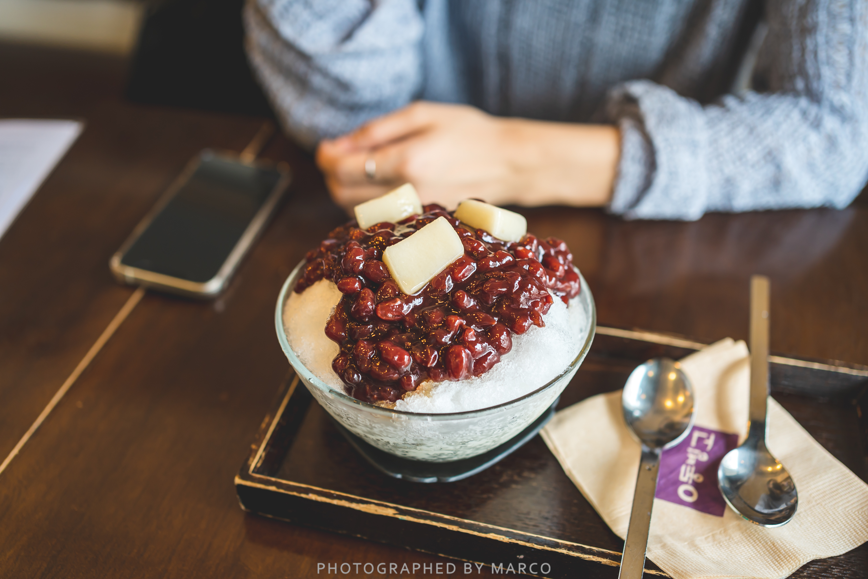 붉은팥과 하얀 빙수가 참 잘 어울린다.