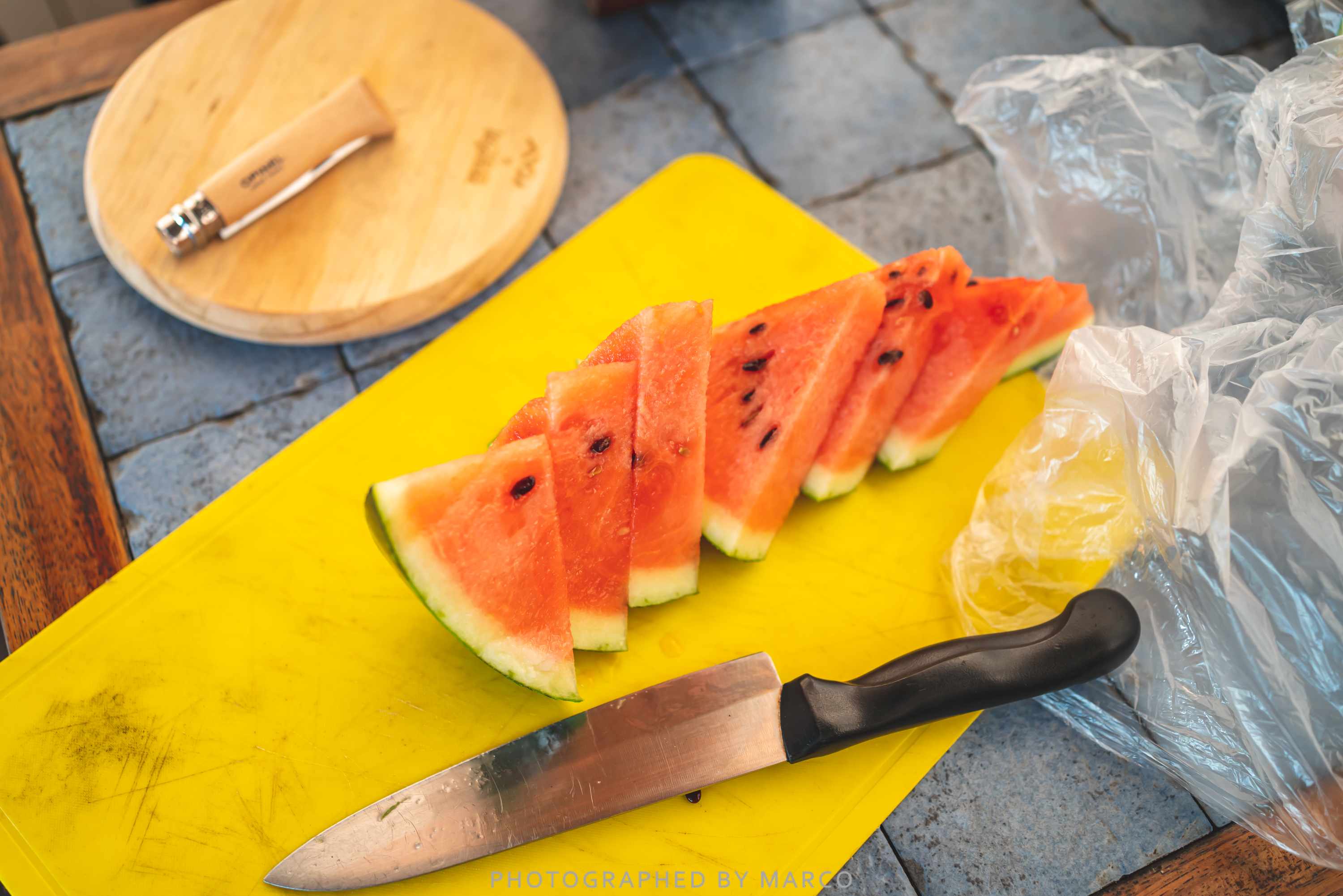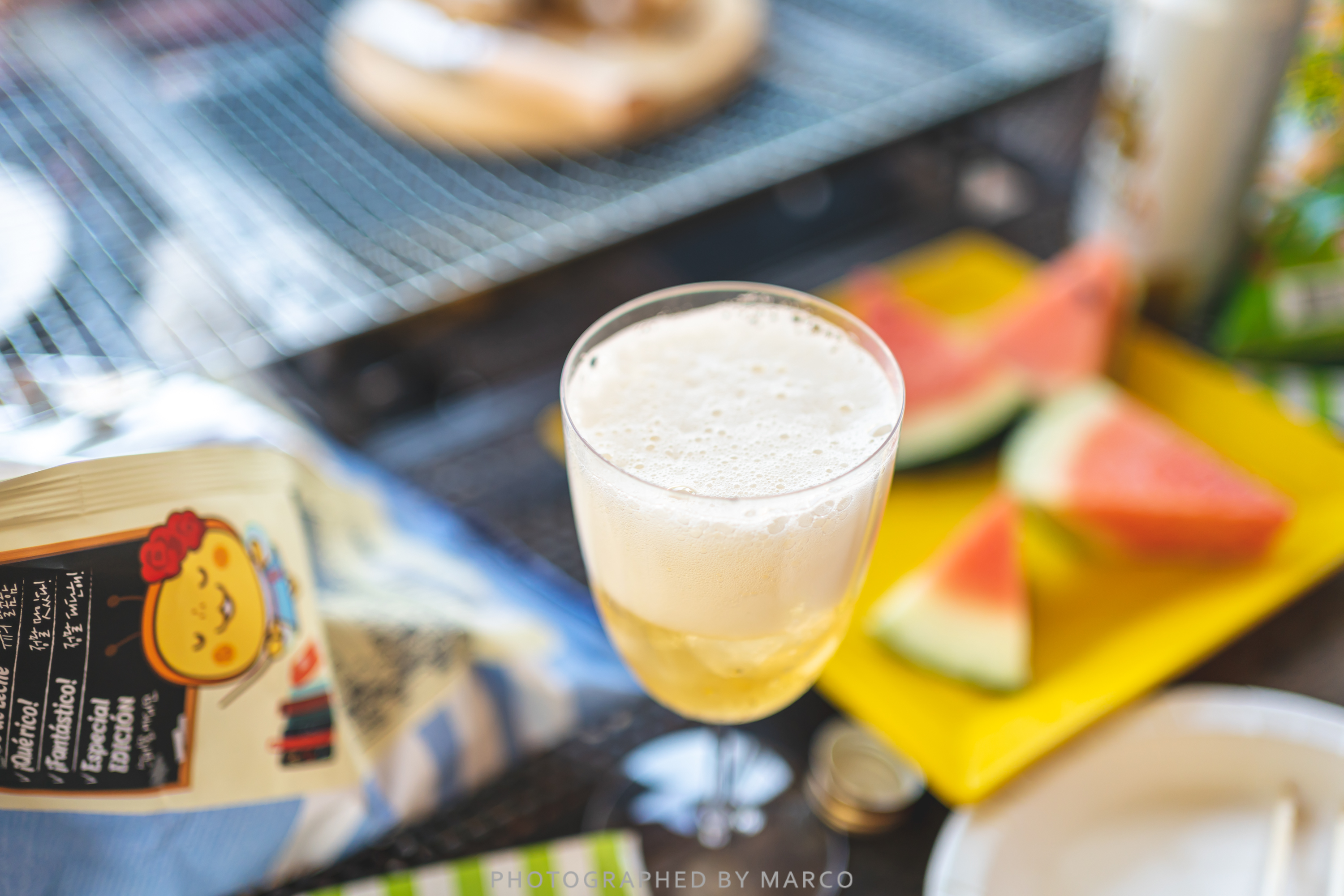 수박도 세팅하고 소시지도 굽고 안주 세팅 완료