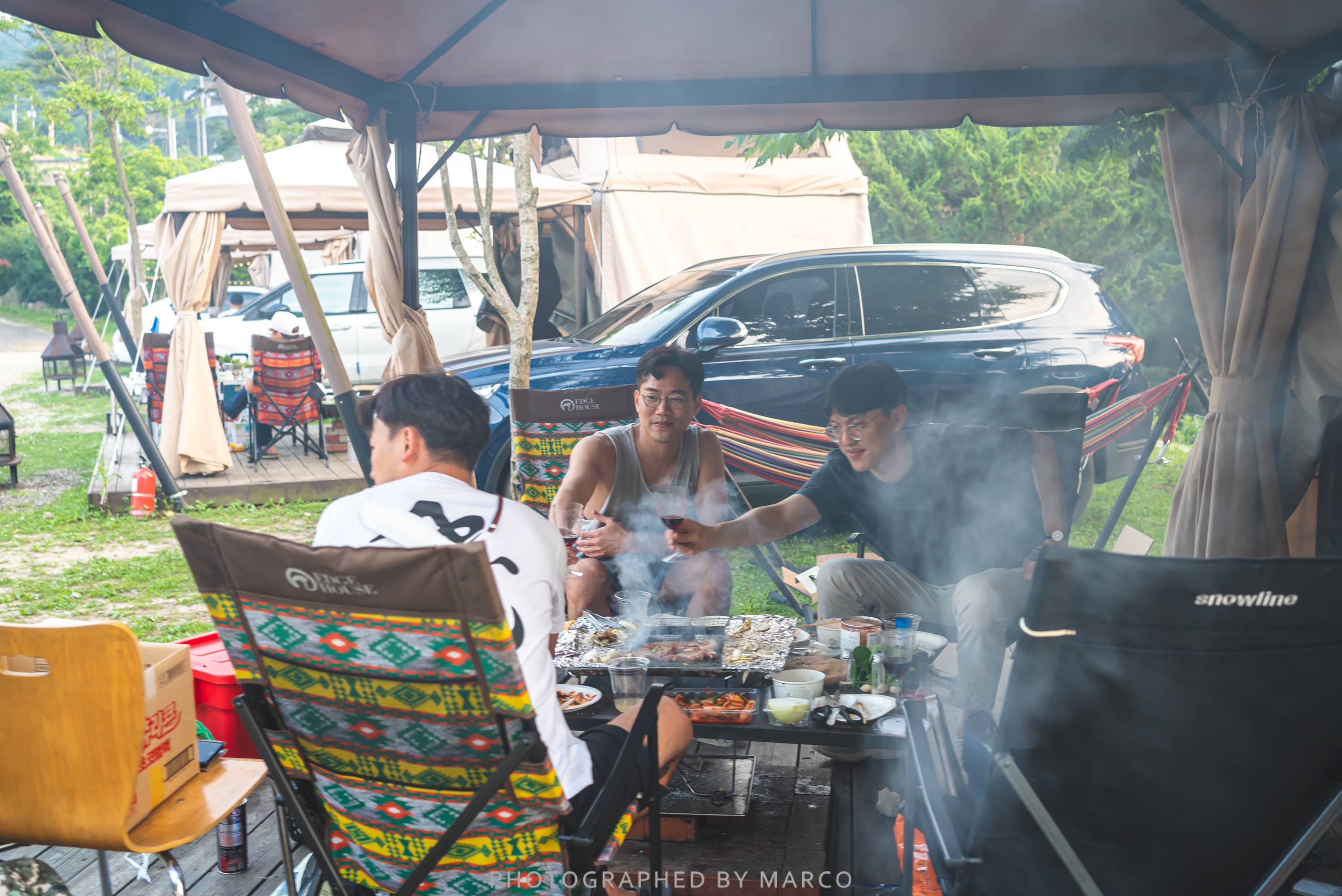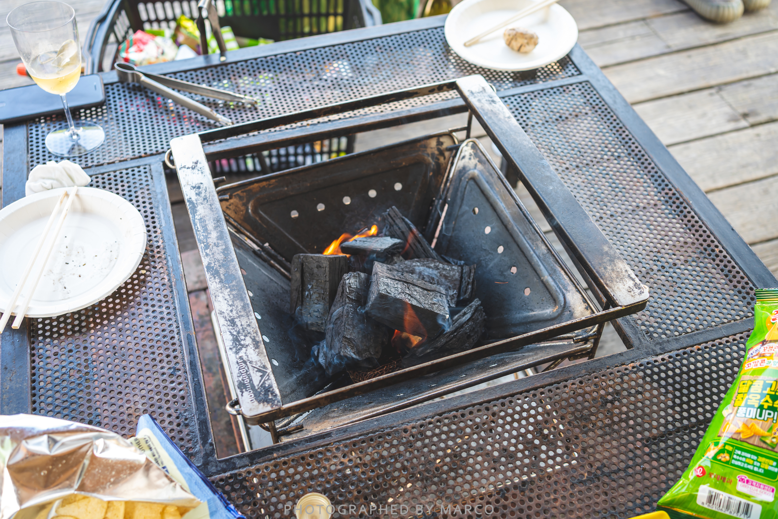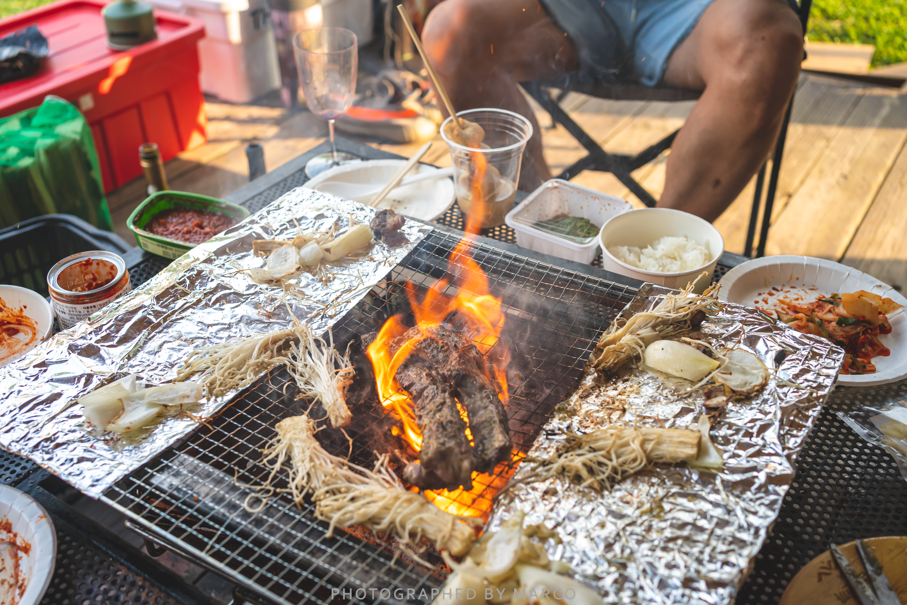 클럽 레스피아의 좋은 점은 데크 위에 바로 고기도 구워 먹을 수 있는 화로가 있다는 점이다.