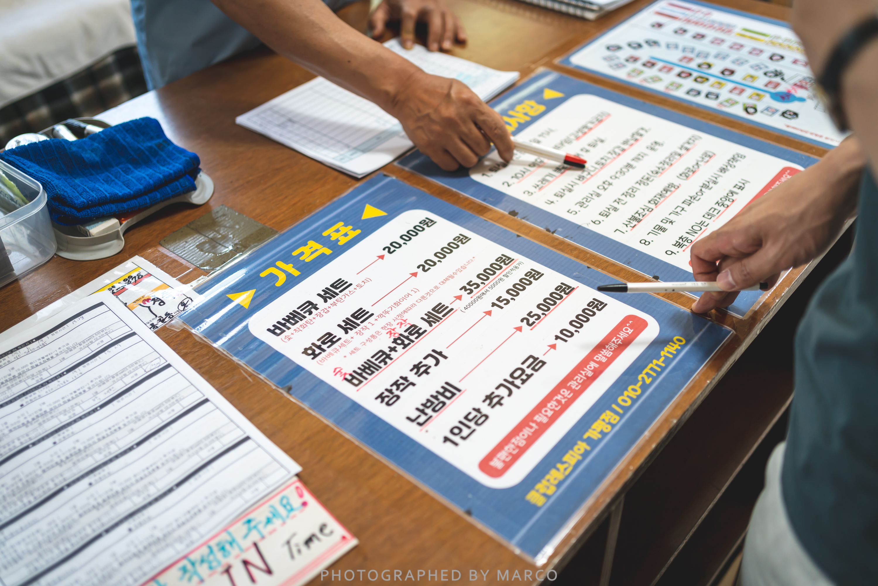 바비큐 세트 2만 원, 화로 세트 2만 원, 장작 추가 1만 5천 원