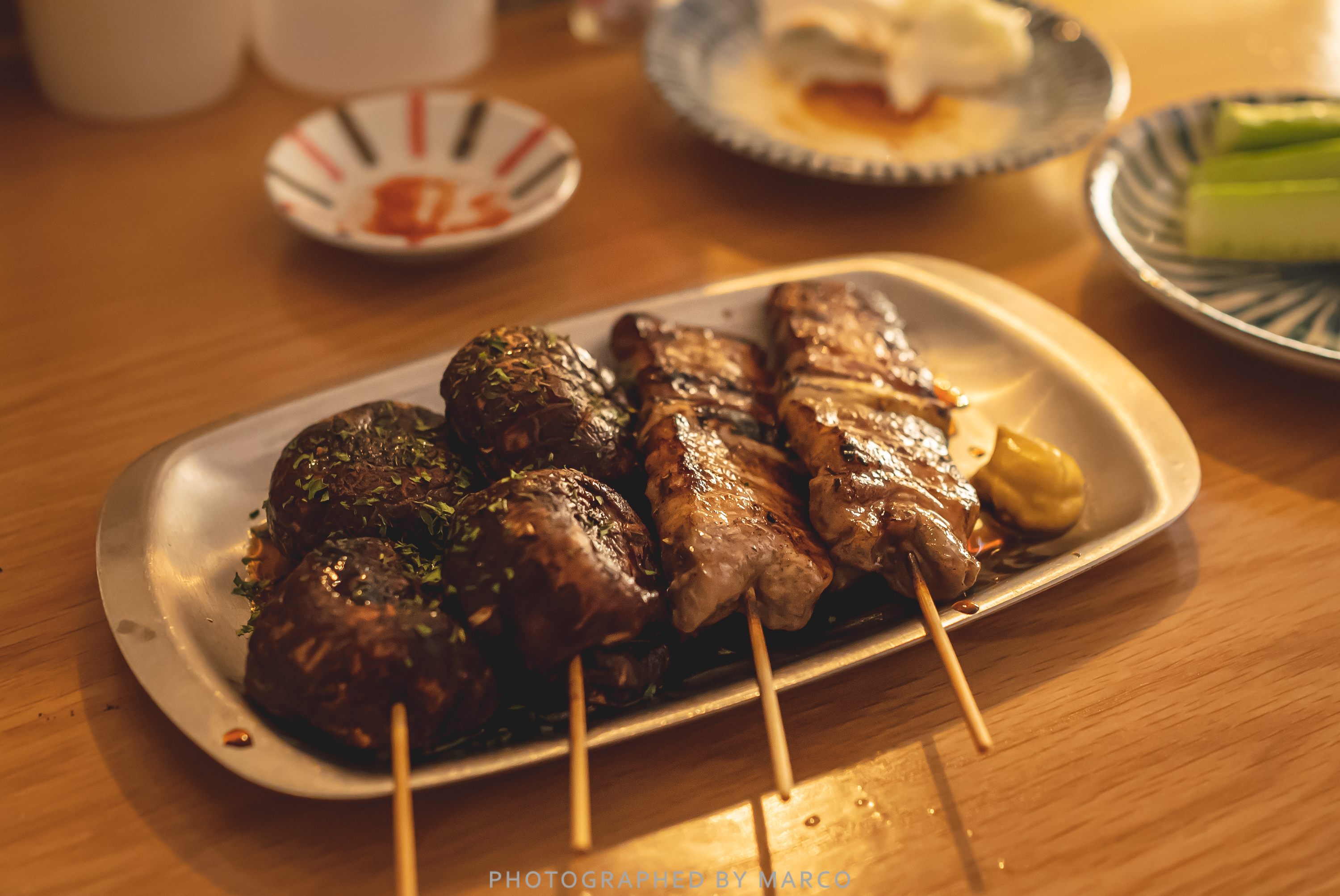 쿠시야키(串燒き) 꼬치에 꿰어 구운 음식이란 뜻으로 '야키토리(구운 닭)와 뜻과 비슷하지만 다양한 꼬치 류를 표현한 단어라고 보면 좋을 것 같다.