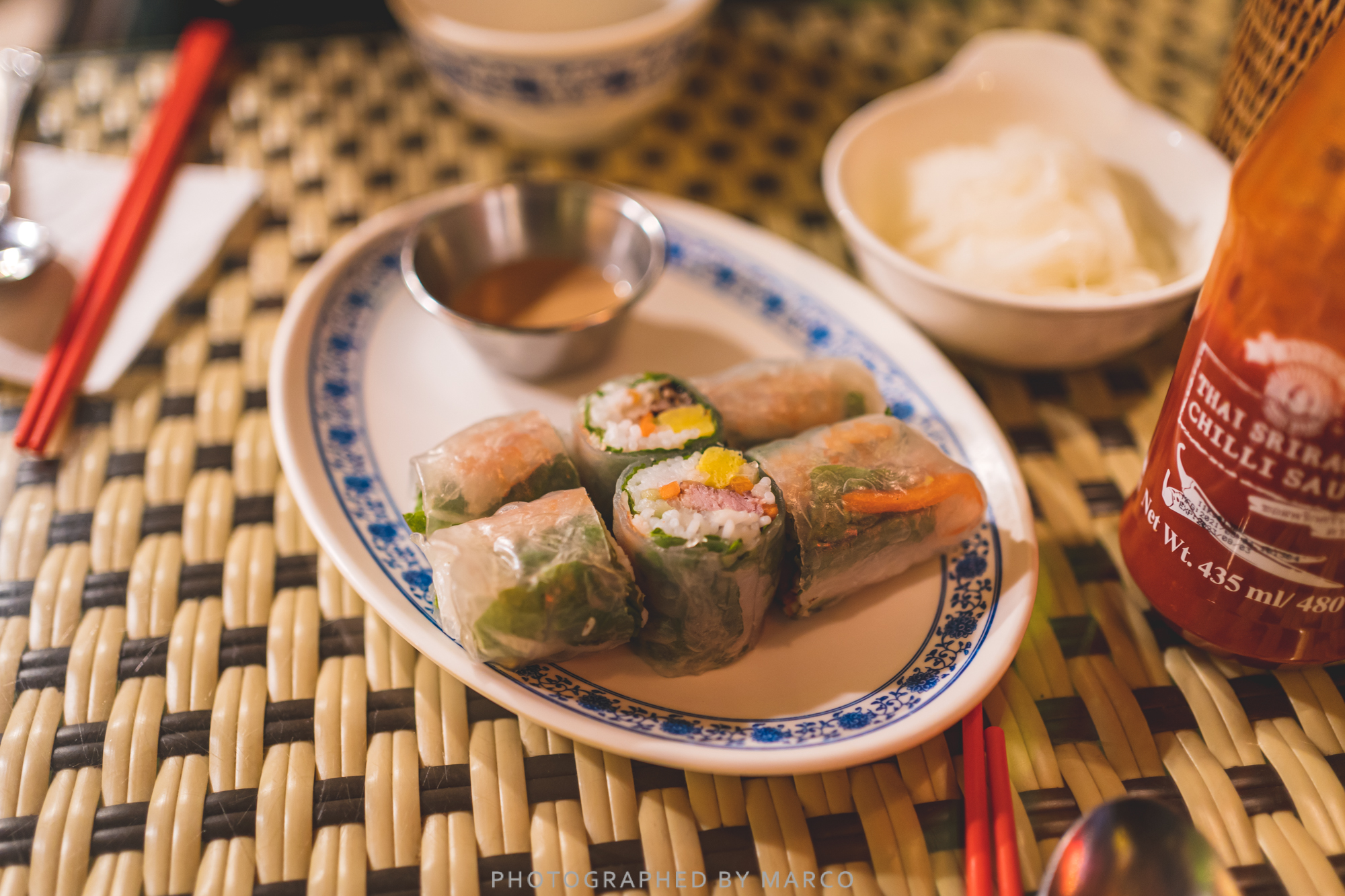 메뉴로 쌀국수와 스프링롤 껌능(돼지고기밥)을 주문하고 가게 구경
