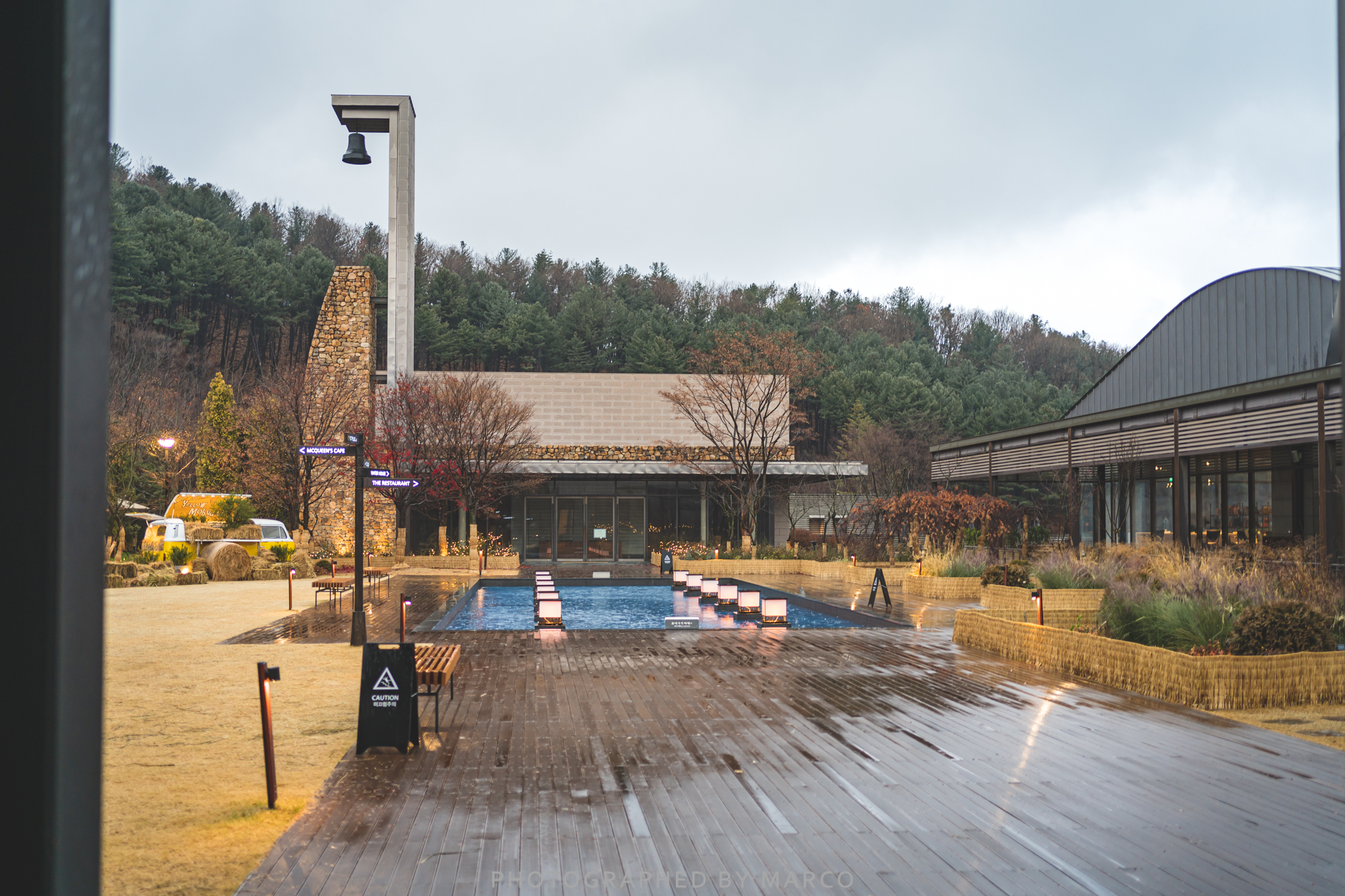 따듯한 코코아와 비를 즐기며 아난티 코드의 산책로를 즐겼다.